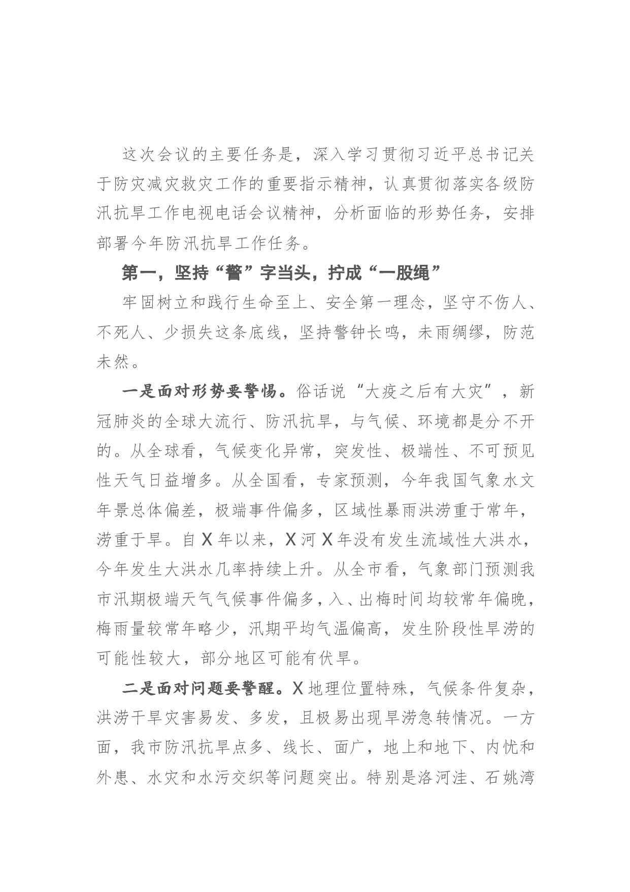 标题:在全市防汛抗旱工作电视电话会议上的讲话