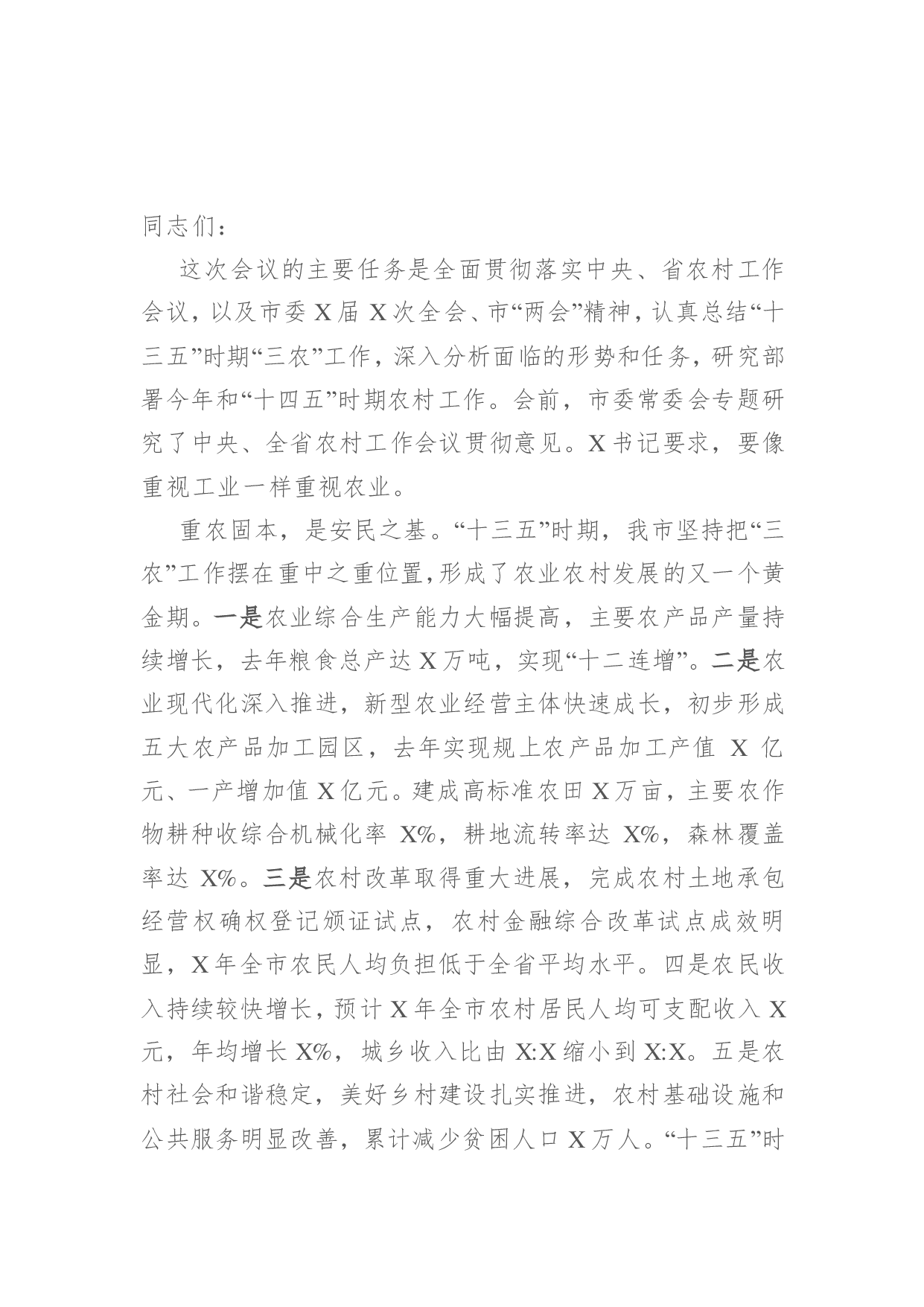 标题:在全市乡村振兴工作会议上的讲话