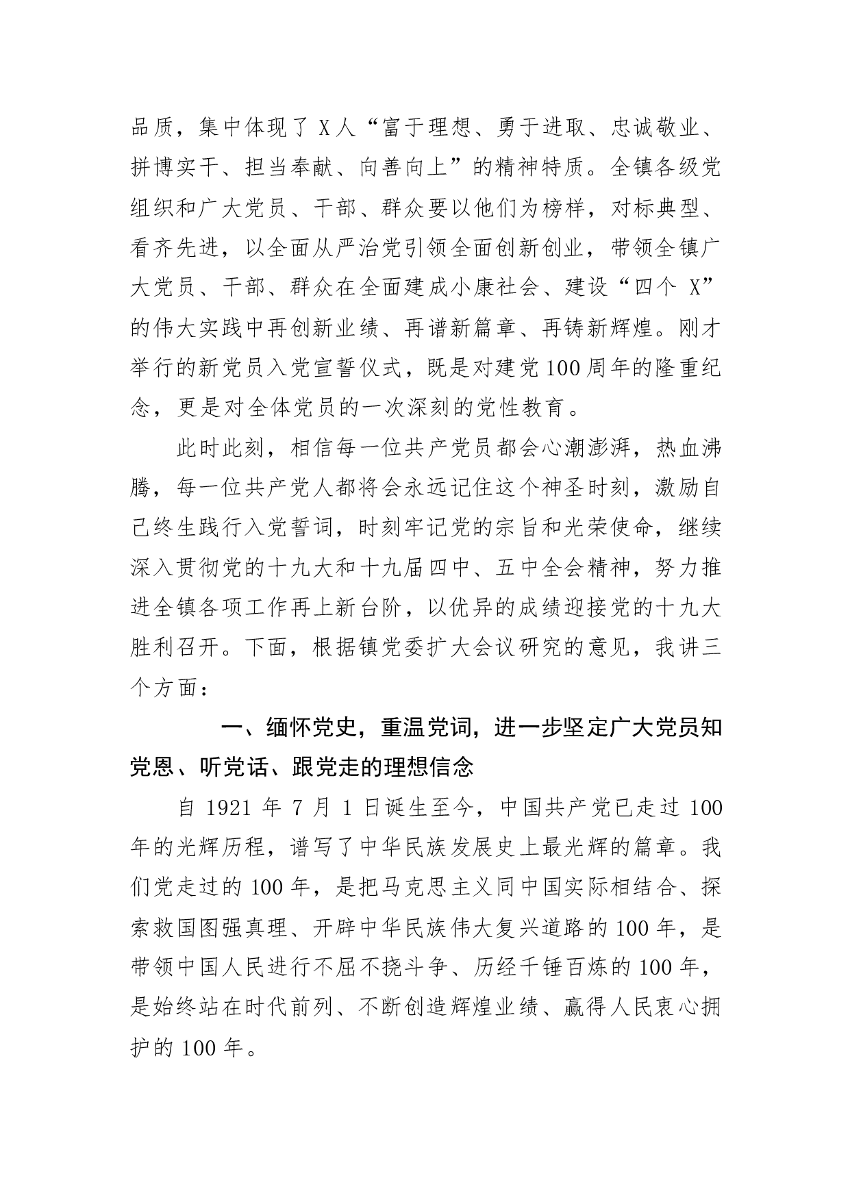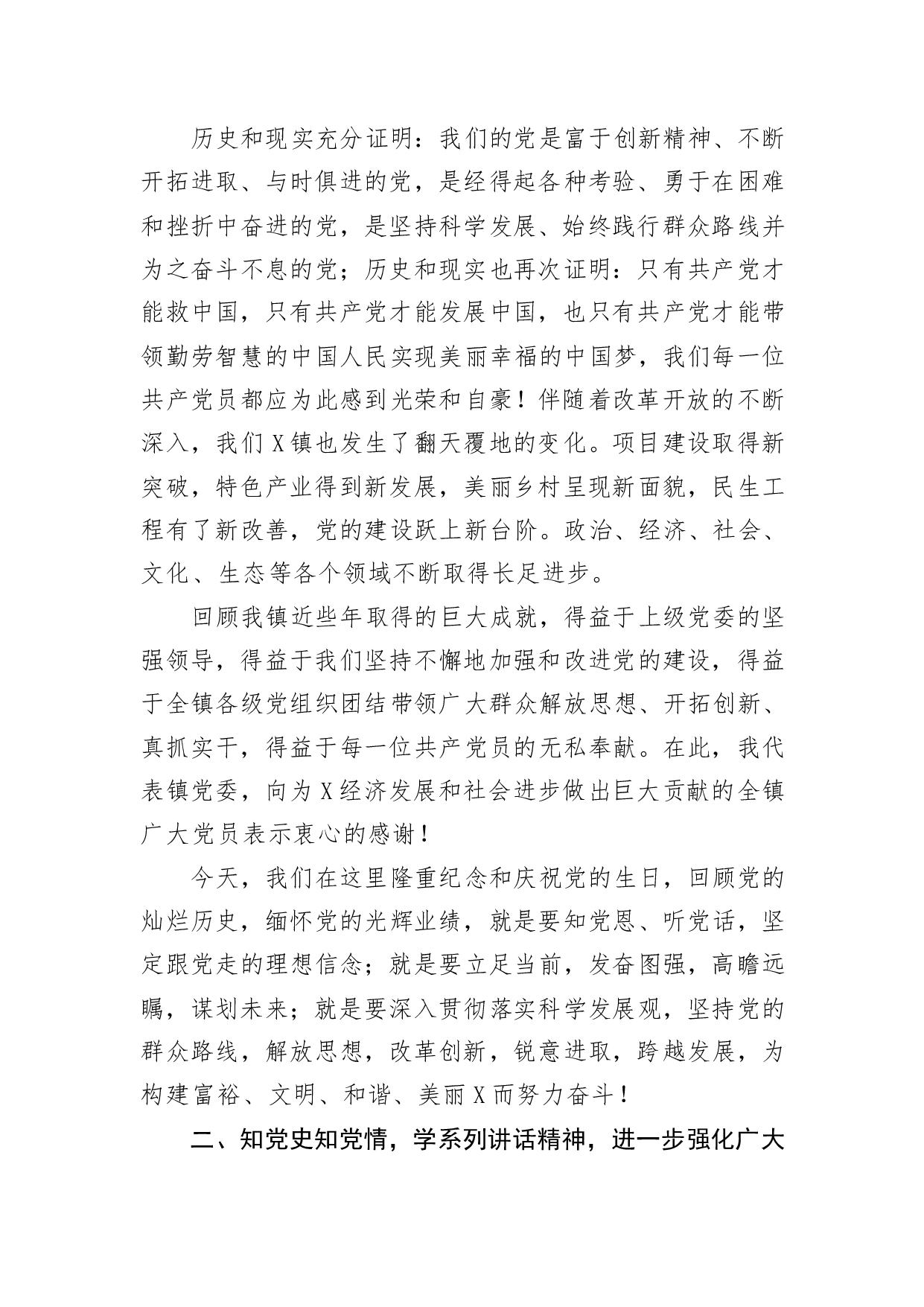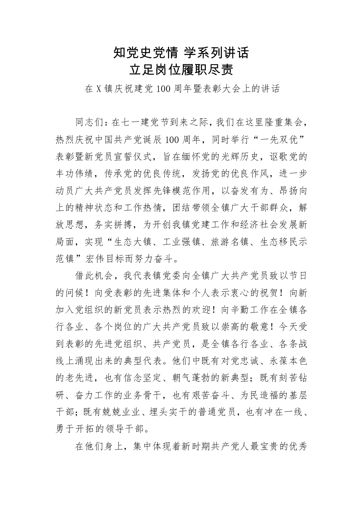 标题:在X镇庆祝建党100周年暨表彰大会上的讲话