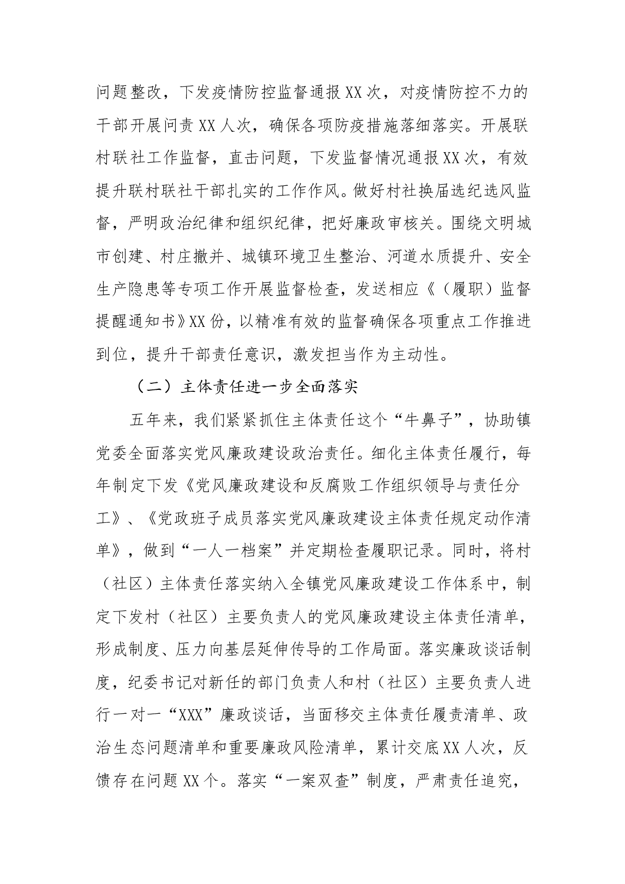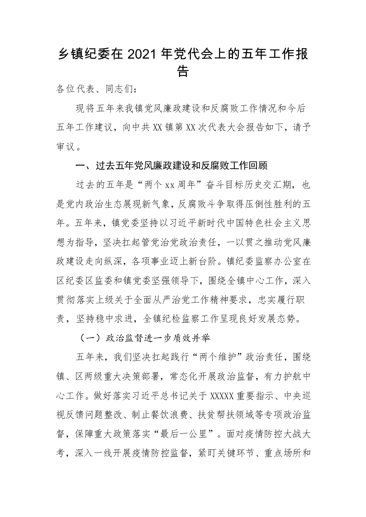 标题:乡镇纪委在2021年党代会上的五年工作报告
