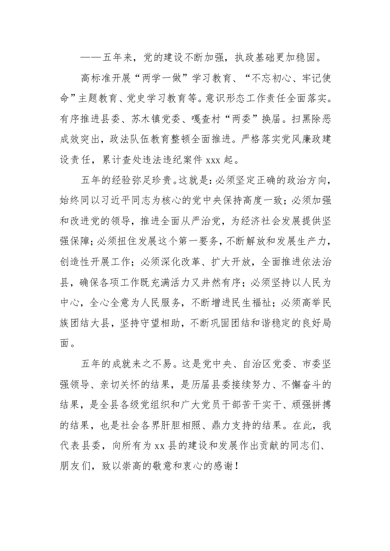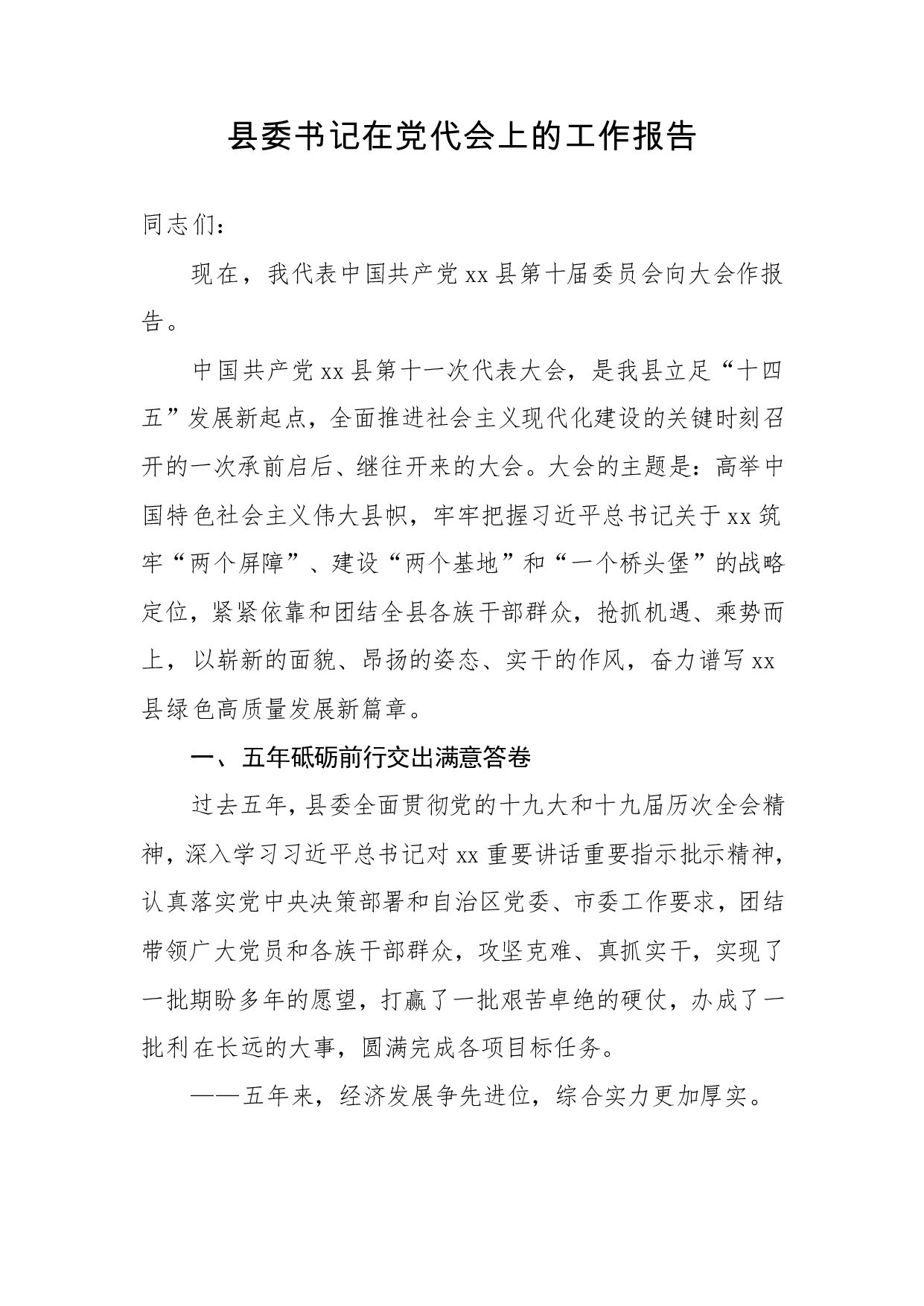 标题:县委书记在党代会上的工作报告