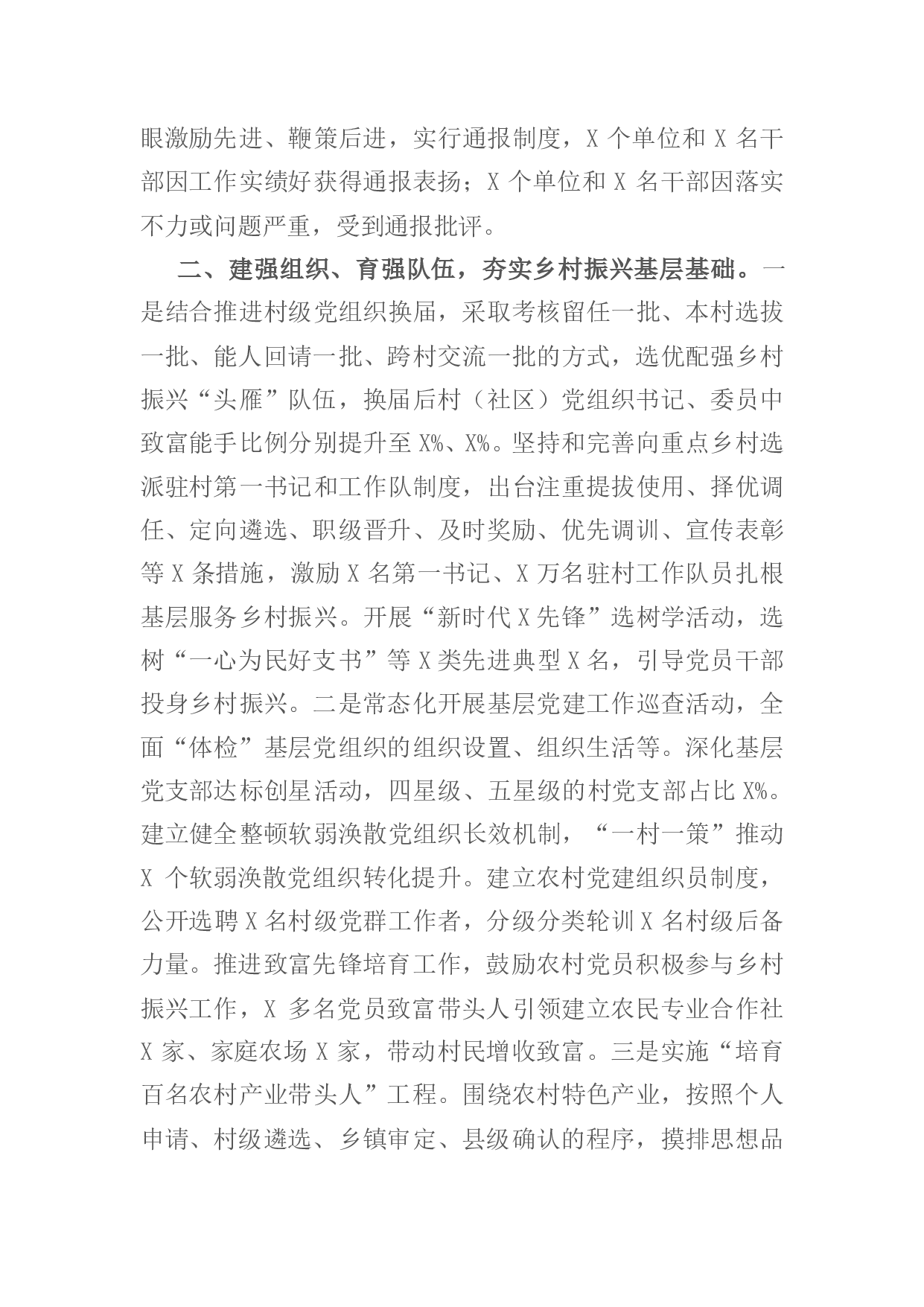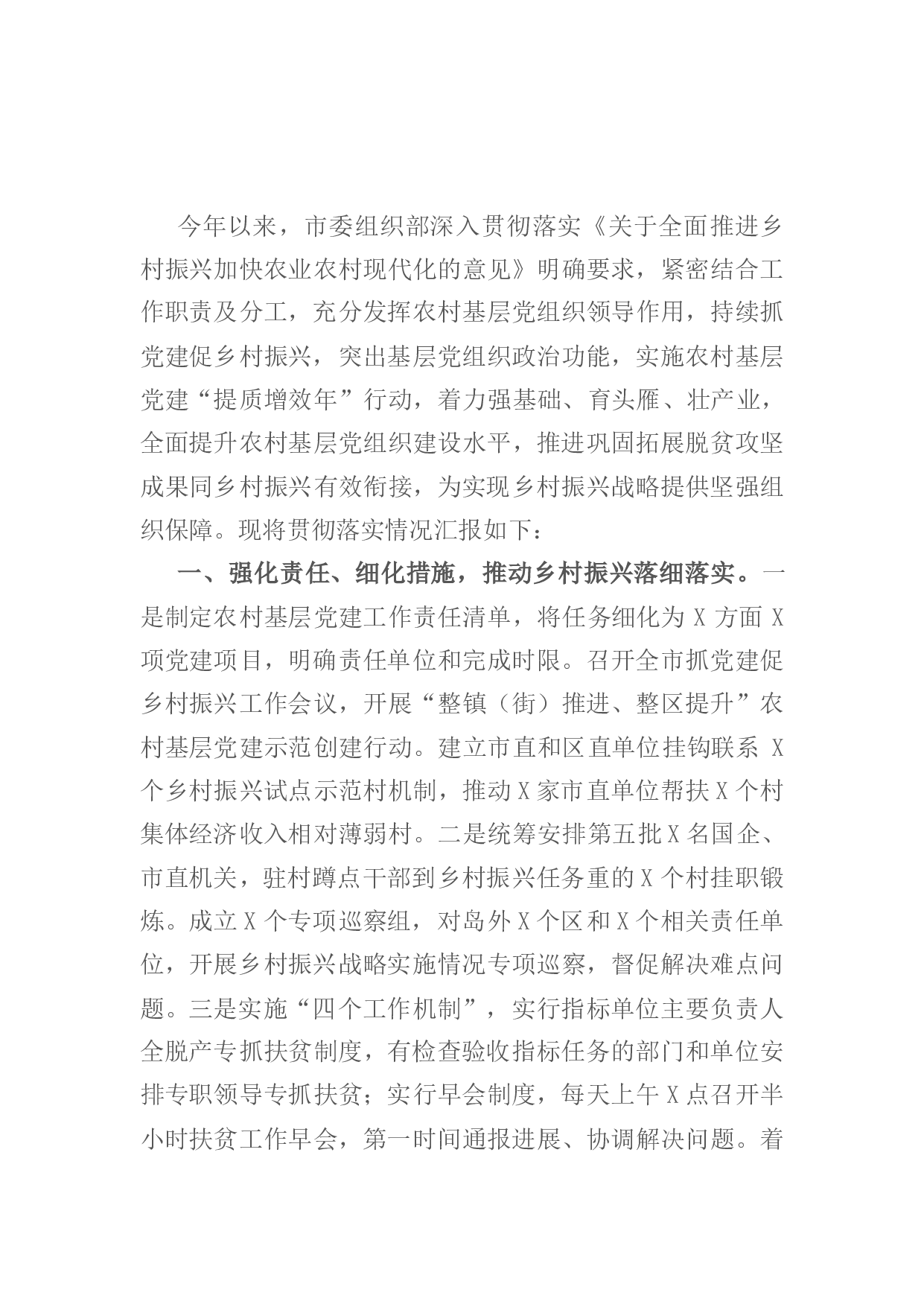 标题:市委组织部2021年实施乡村振兴战略进展情况报告