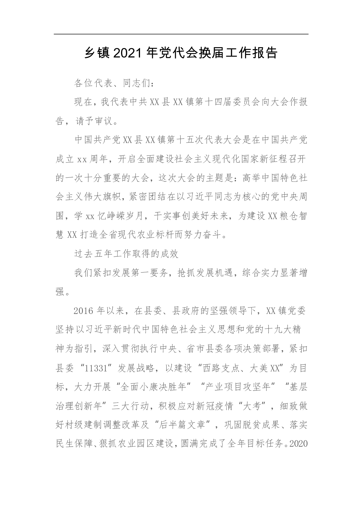 标题:乡镇2021年党代会换届工作报告