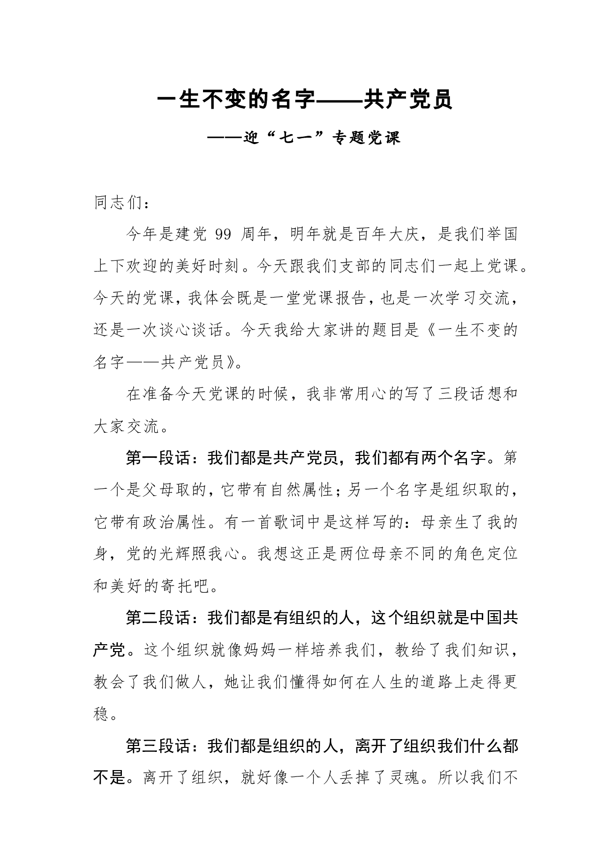 标题:“七一”党课:一生不变的名字——共产党员