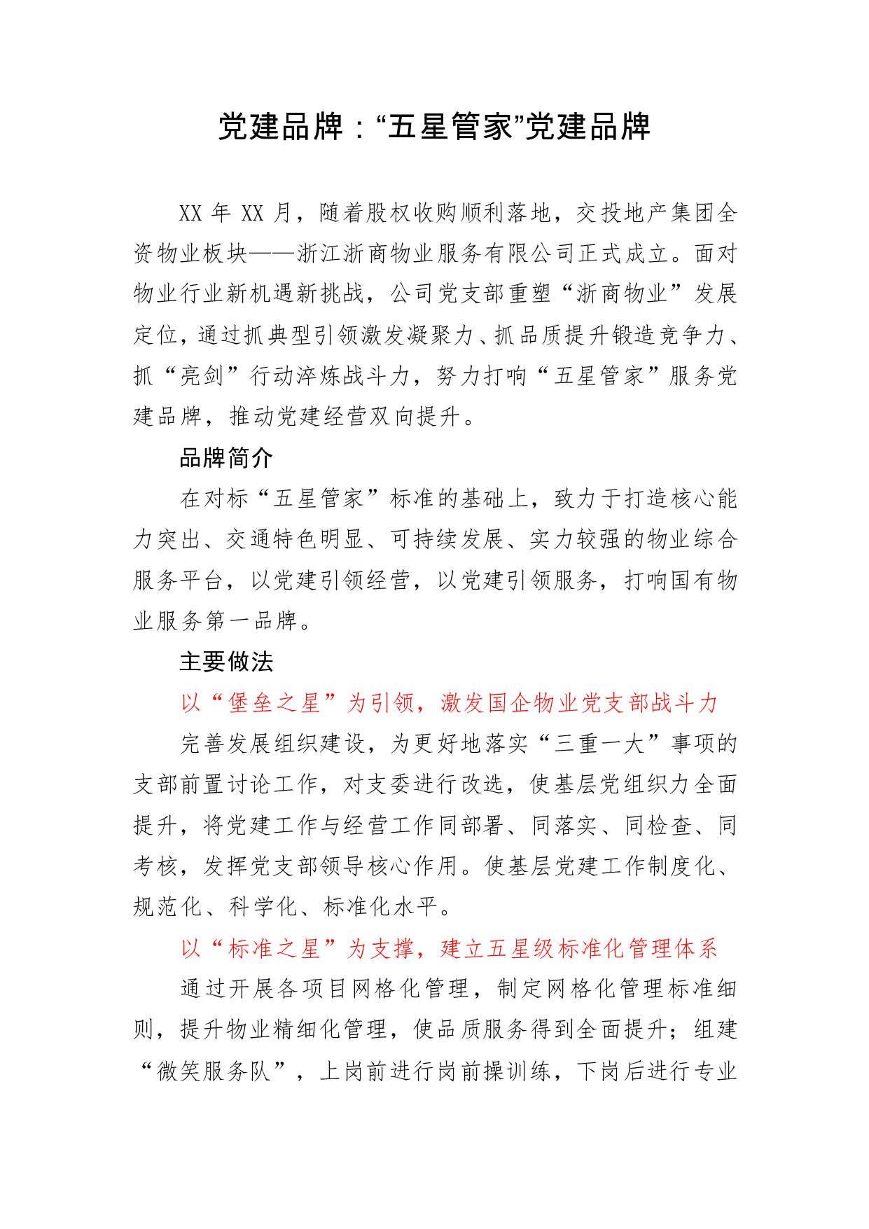 标题:党建品牌:“五星管家”党建品牌