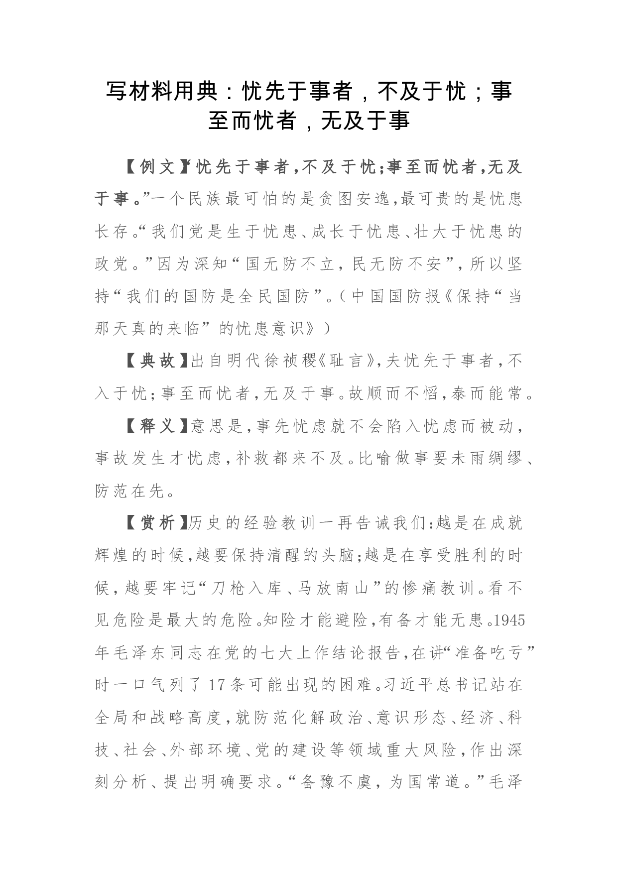 标题:写作素材:忧先于事者,不及于忧;事至而忧者,无及于事