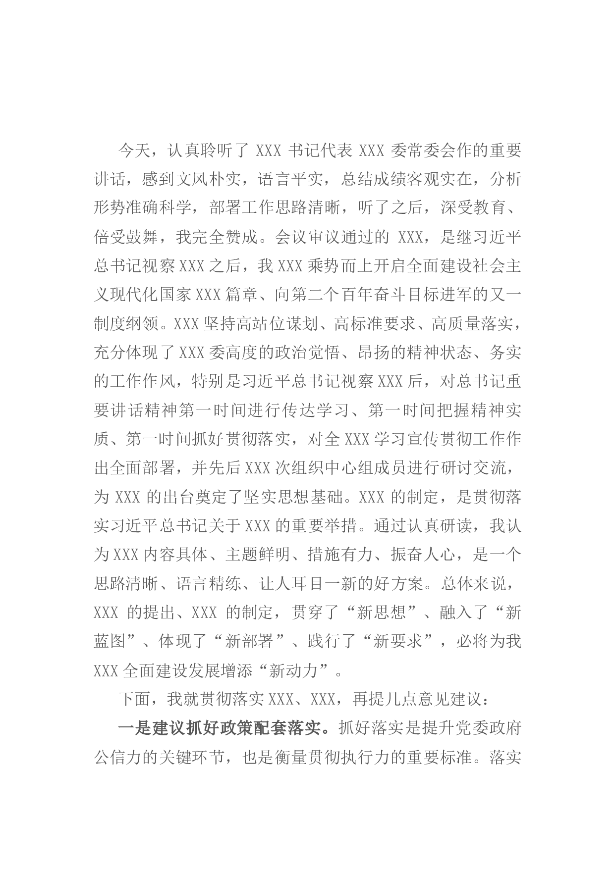 标题:在XXX委第XX届XX次会议上的分组讨论交流材料