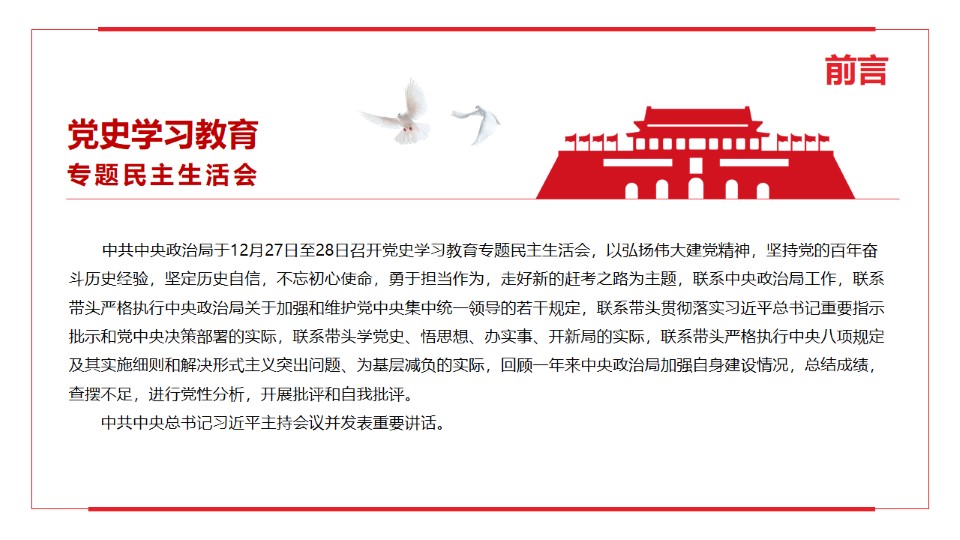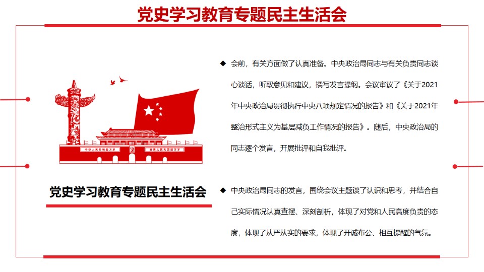 标题:党史学习教育专题民主生活会PPT模板
