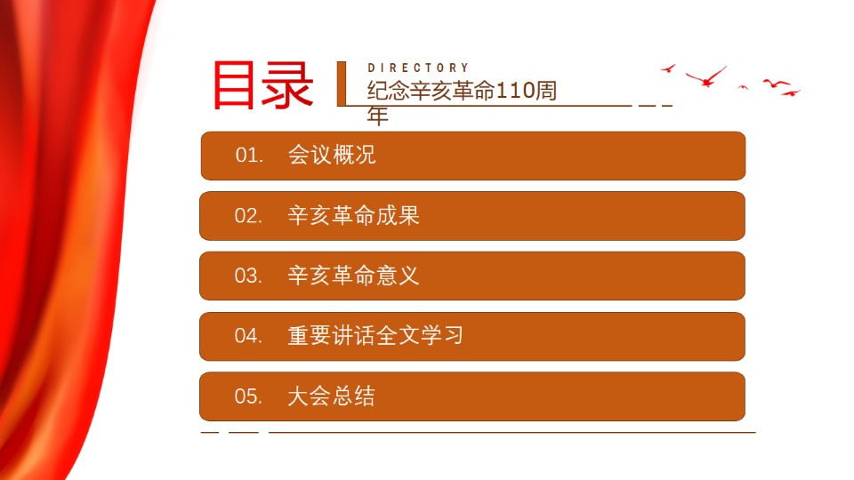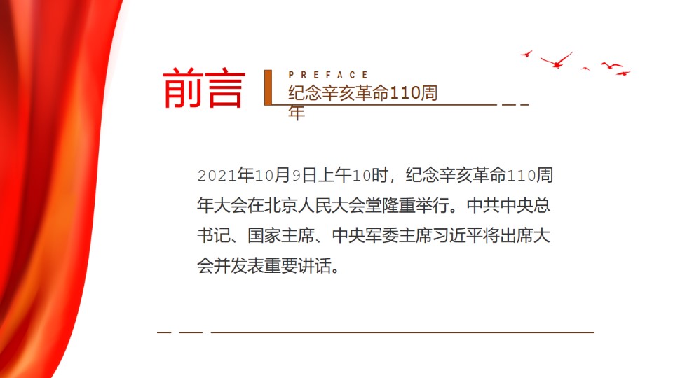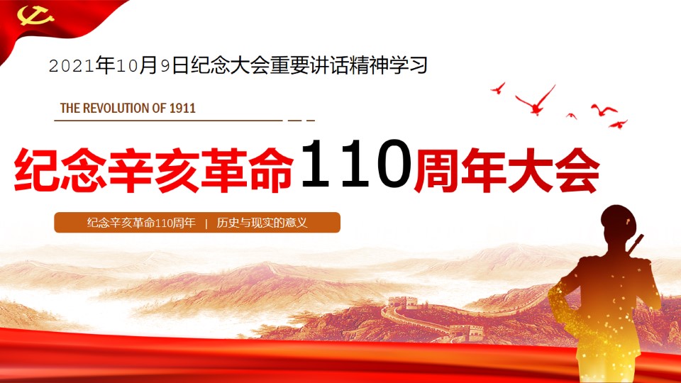 标题:纪念辛亥革命110周年大会重要讲话精神学习ppt课件