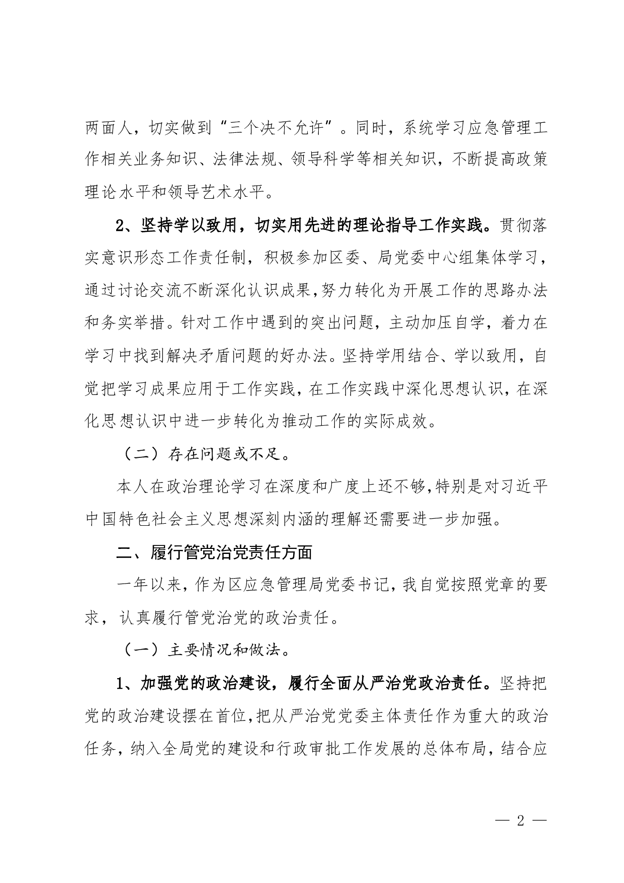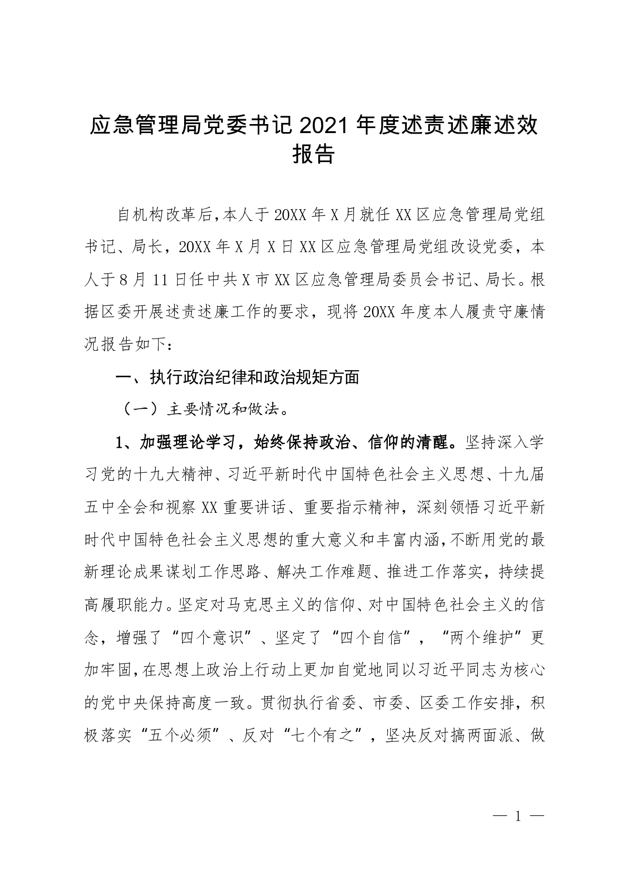 标题:应急管理局党委书记2021年度述责述廉述效报告
