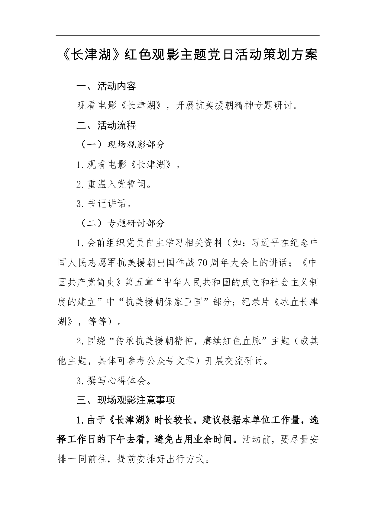 标题:《长津湖》红色观影主题党日活动策划方案