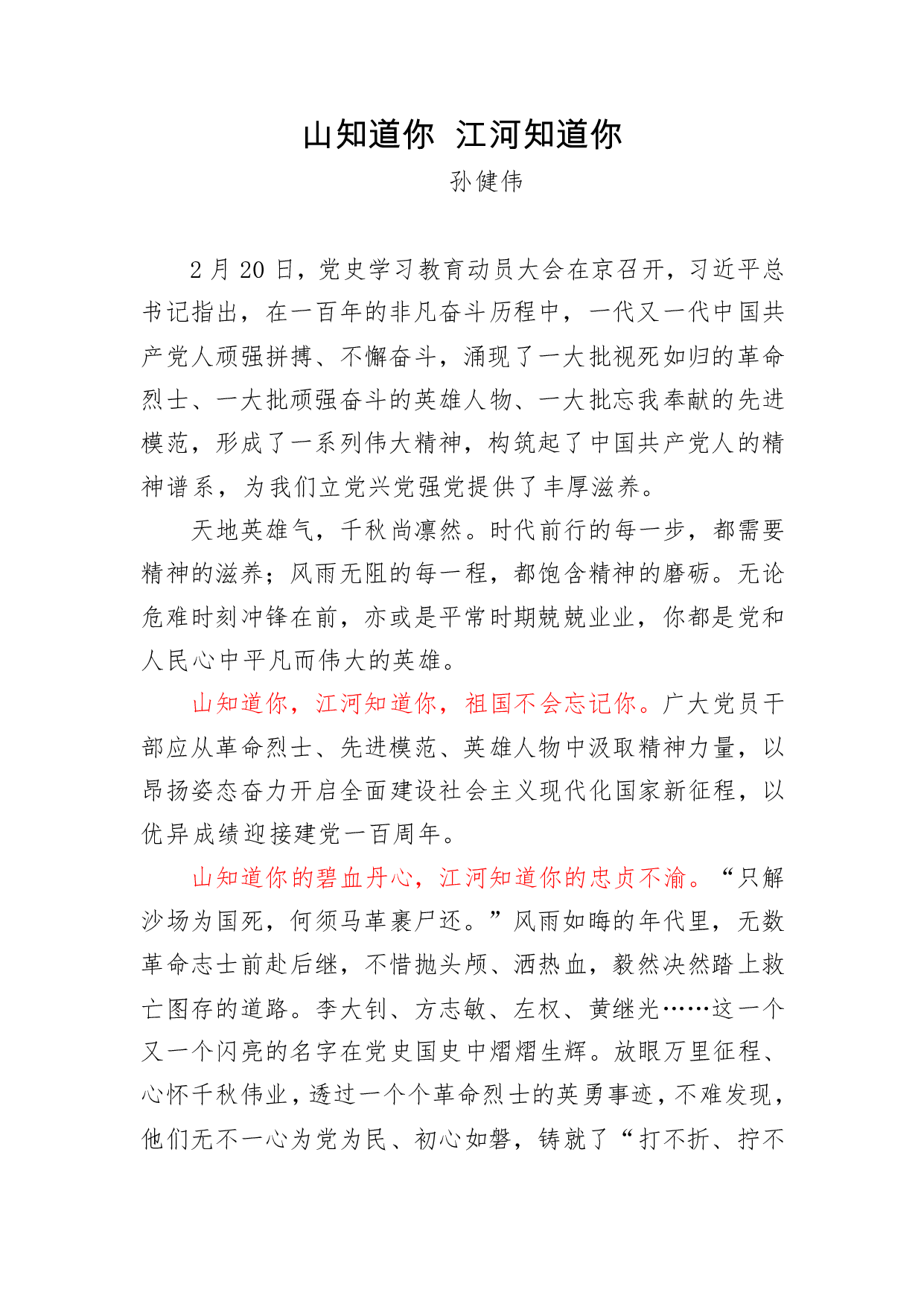 标题:建党100周年演讲稿:山知道你 江河知道你