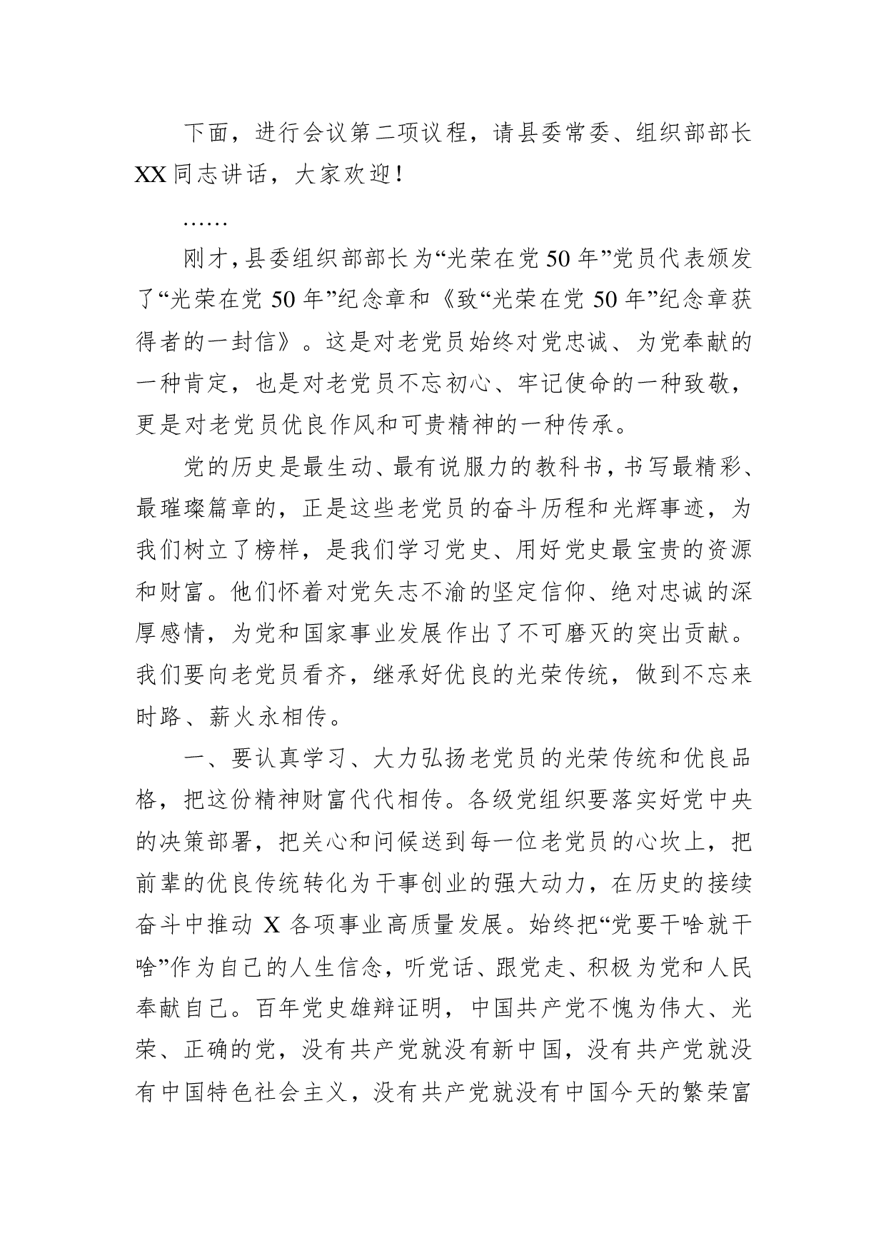 标题:在“光荣在党50年”纪念章颁发仪式上的主持词