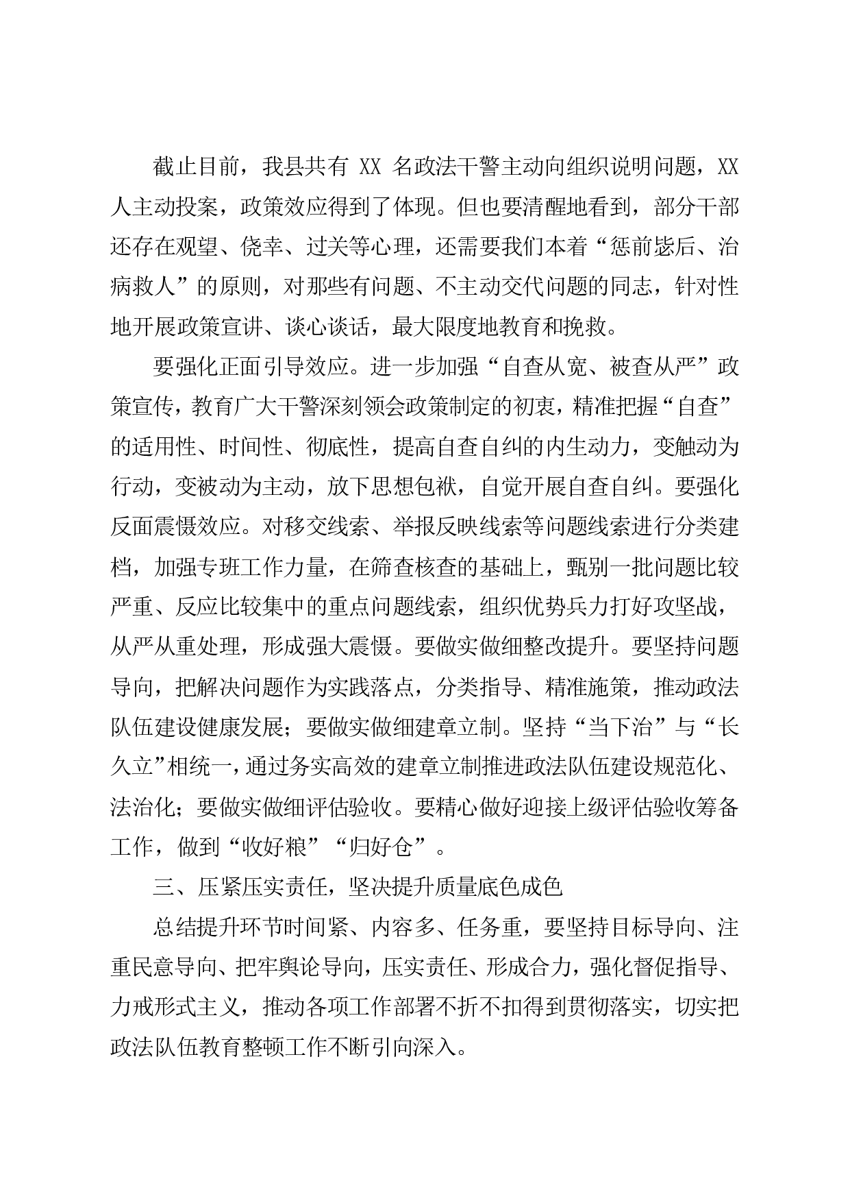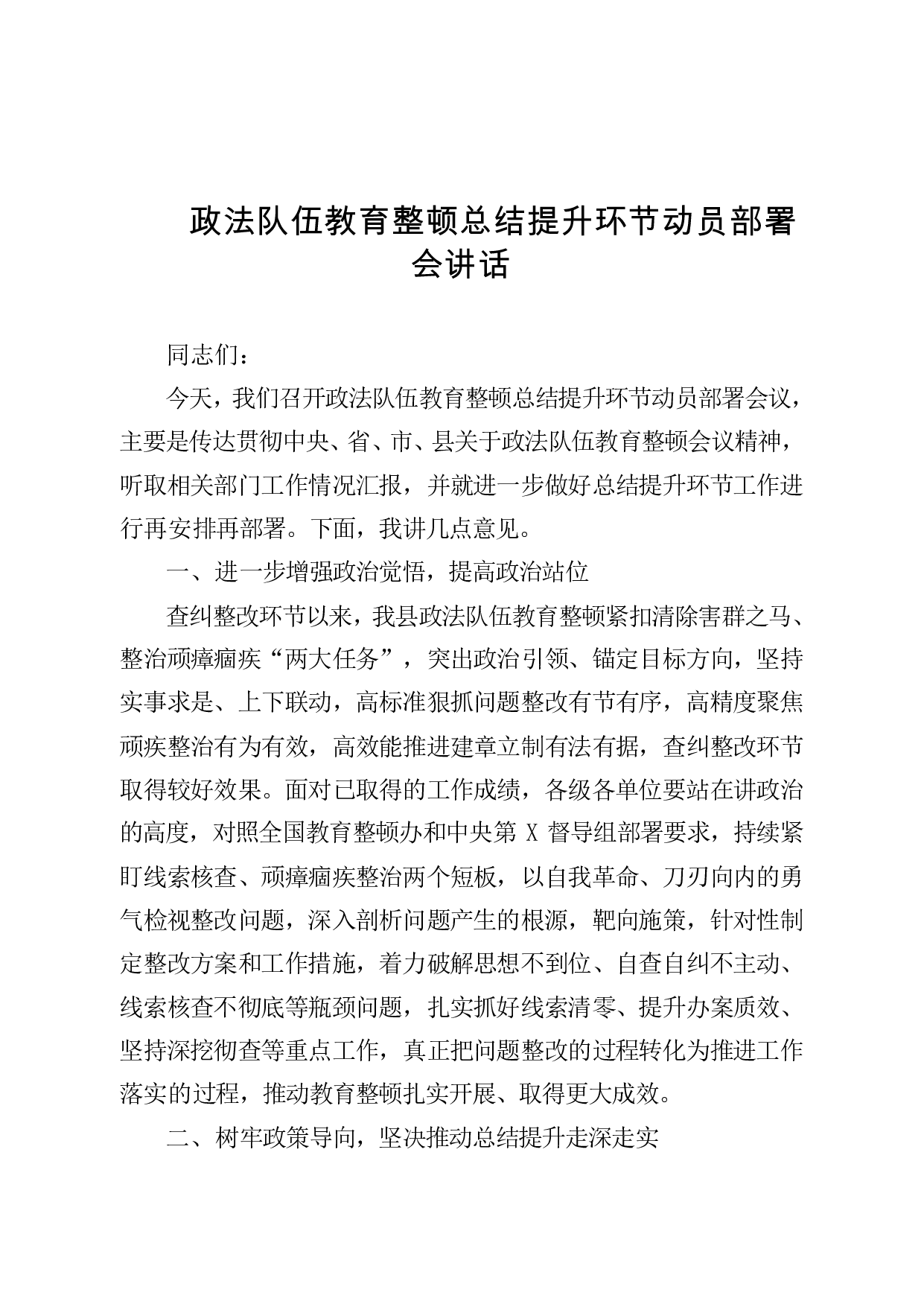 标题:政法队伍教育整顿总结提升环节动员部署会讲话