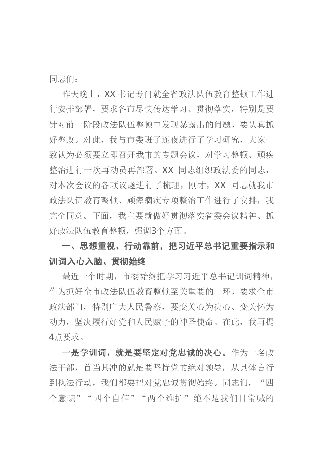 标题:在全市政法队伍教育整顿暨线索办理、顽瘴痼疾专项整治专题会上的讲话