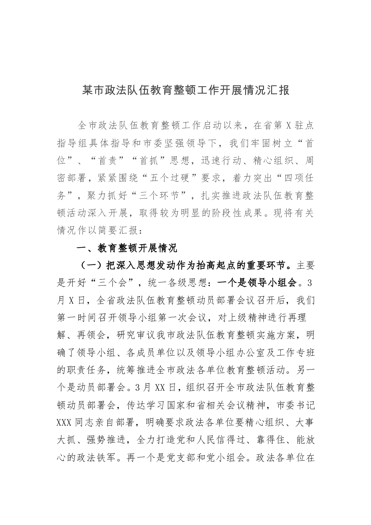 标题:某市政法队伍教育整顿工作开展情况汇报