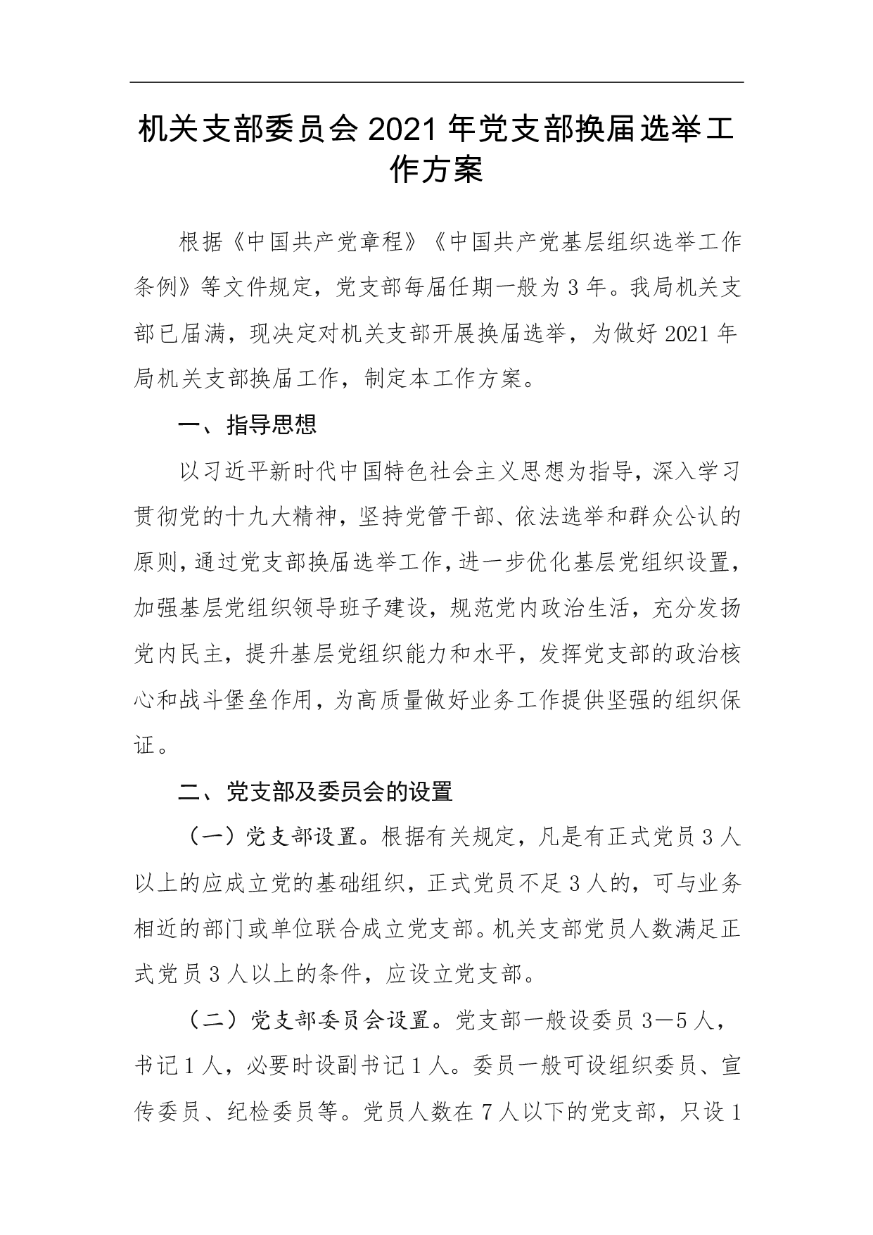 标题:机关支部委员会2021年党支部换届选举工作方案