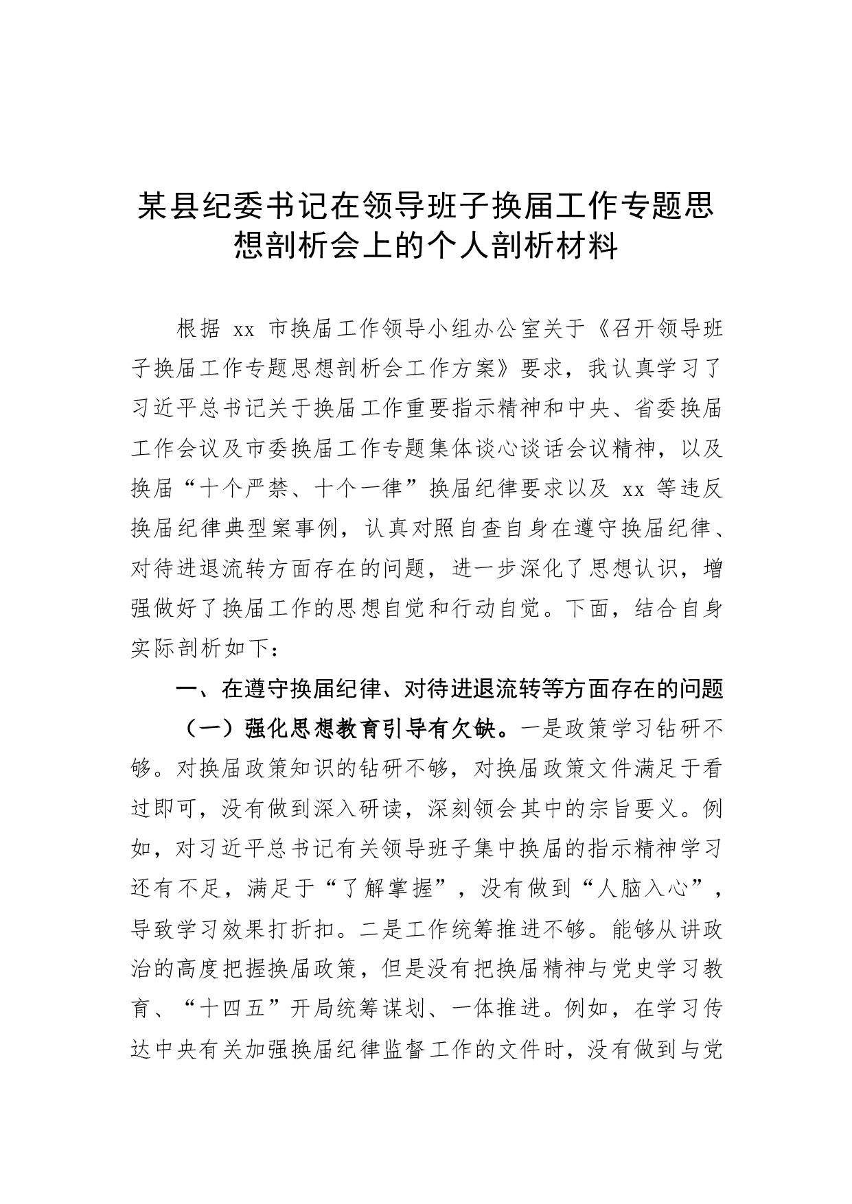 标题:县纪委书记在领导班子换届工作专题思想剖析会上的个人剖析材料