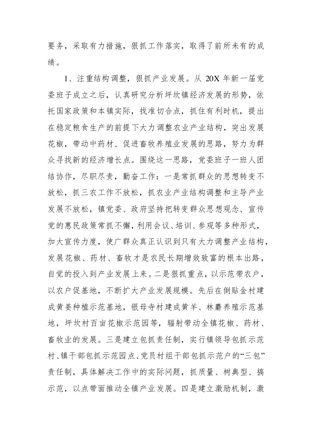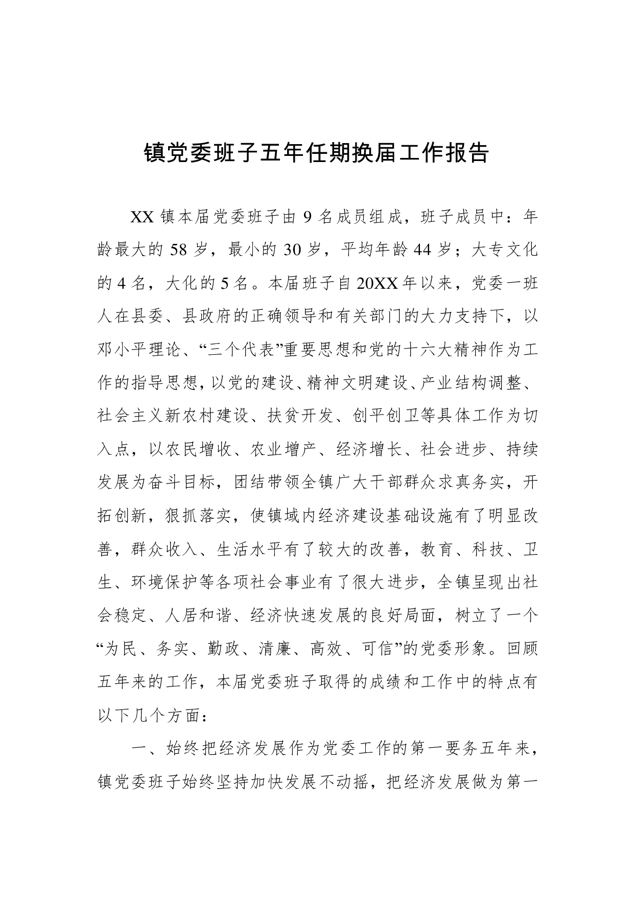 标题:镇党委班子五年任期换届工作报告