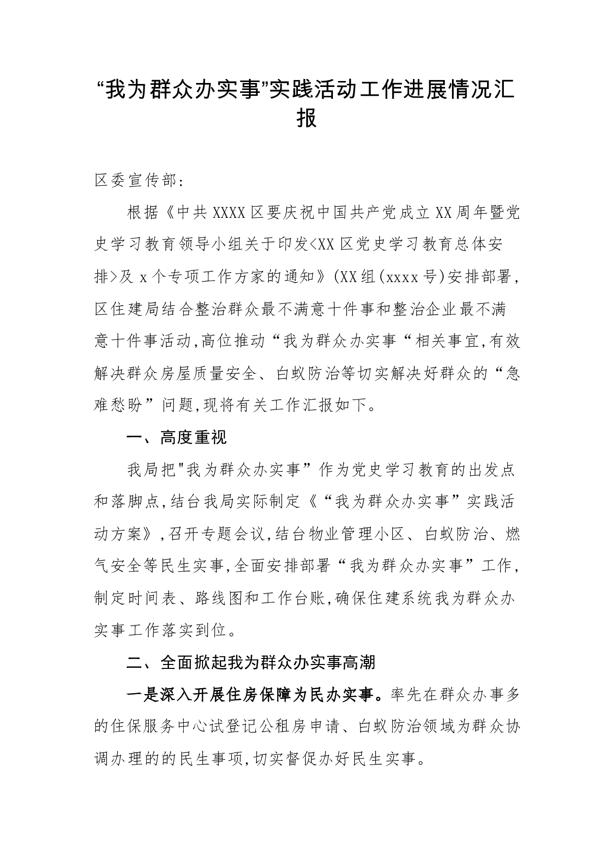 标题:“我为群众办实事”实践活动工作进展情况汇报
