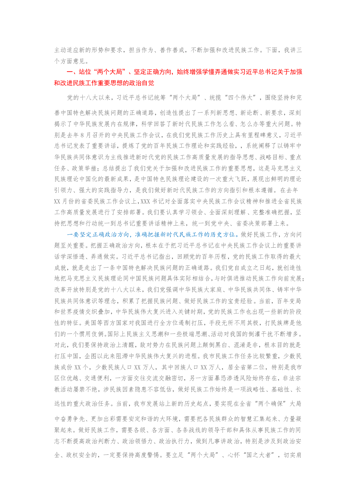 标题:在市委民族工作会议上的讲话