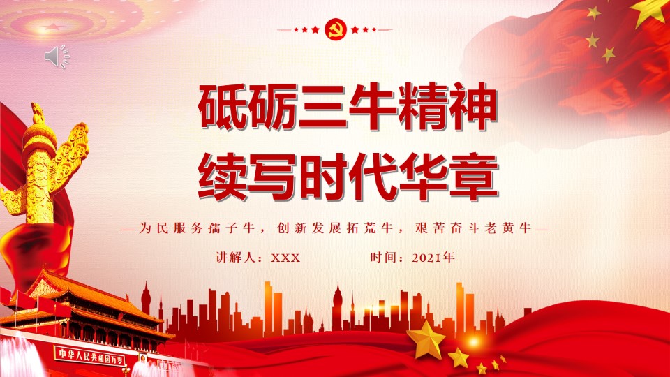 标题:砥砺三牛精神续写时代华章党课PPT(20210617)(PPT模板)