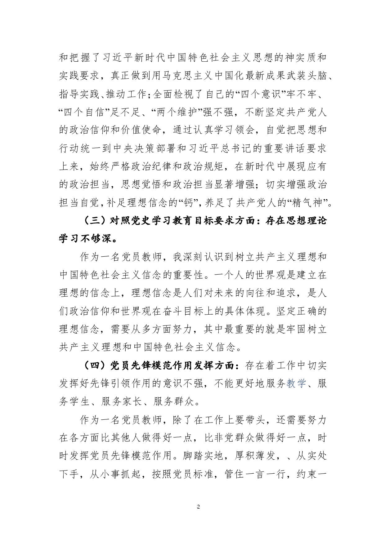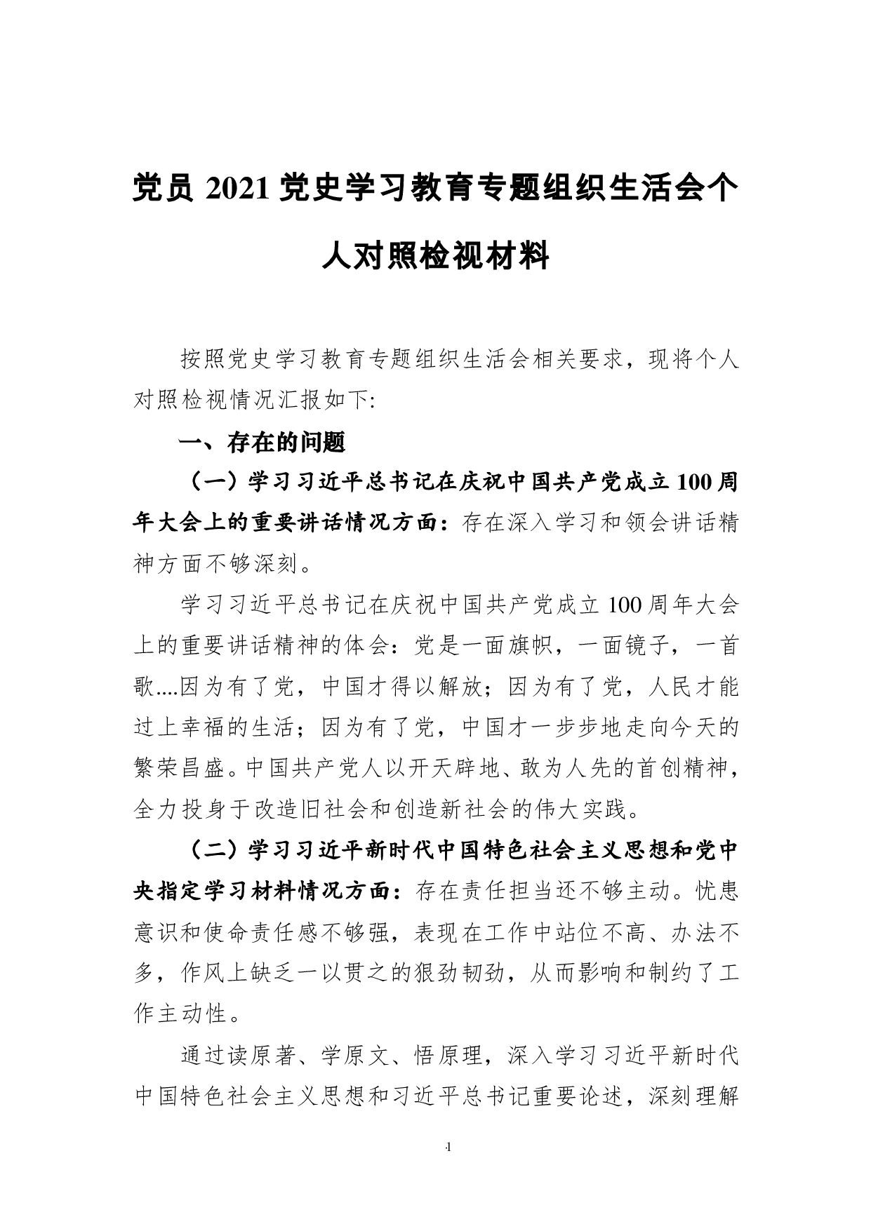 标题:党员2021党史学习教育专题组织生活会个人对照检视材料