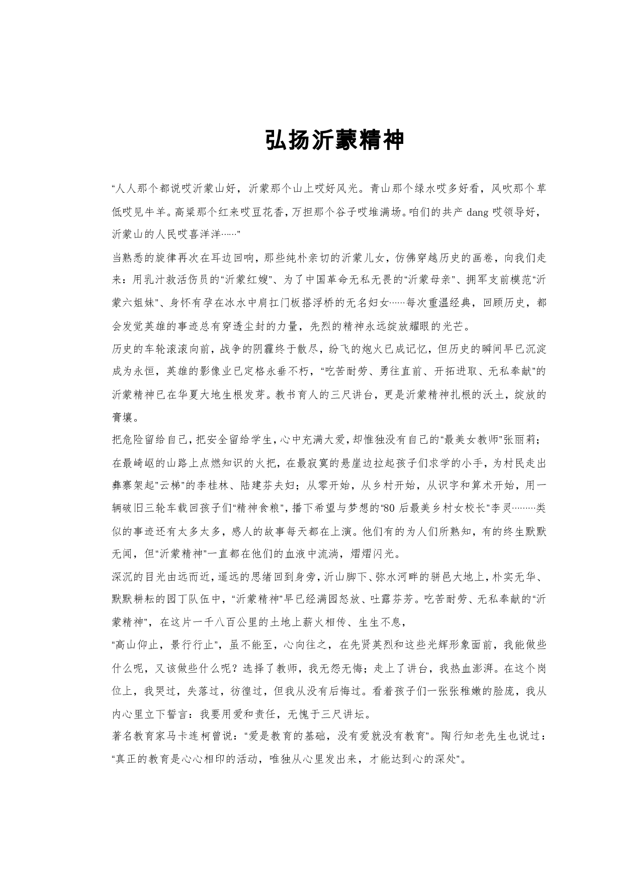 标题:沂蒙精神结合教育工作演讲稿