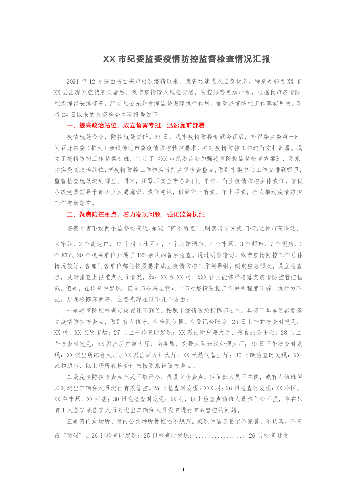 标题:XX市纪委监委疫情防控监督检查情况汇报