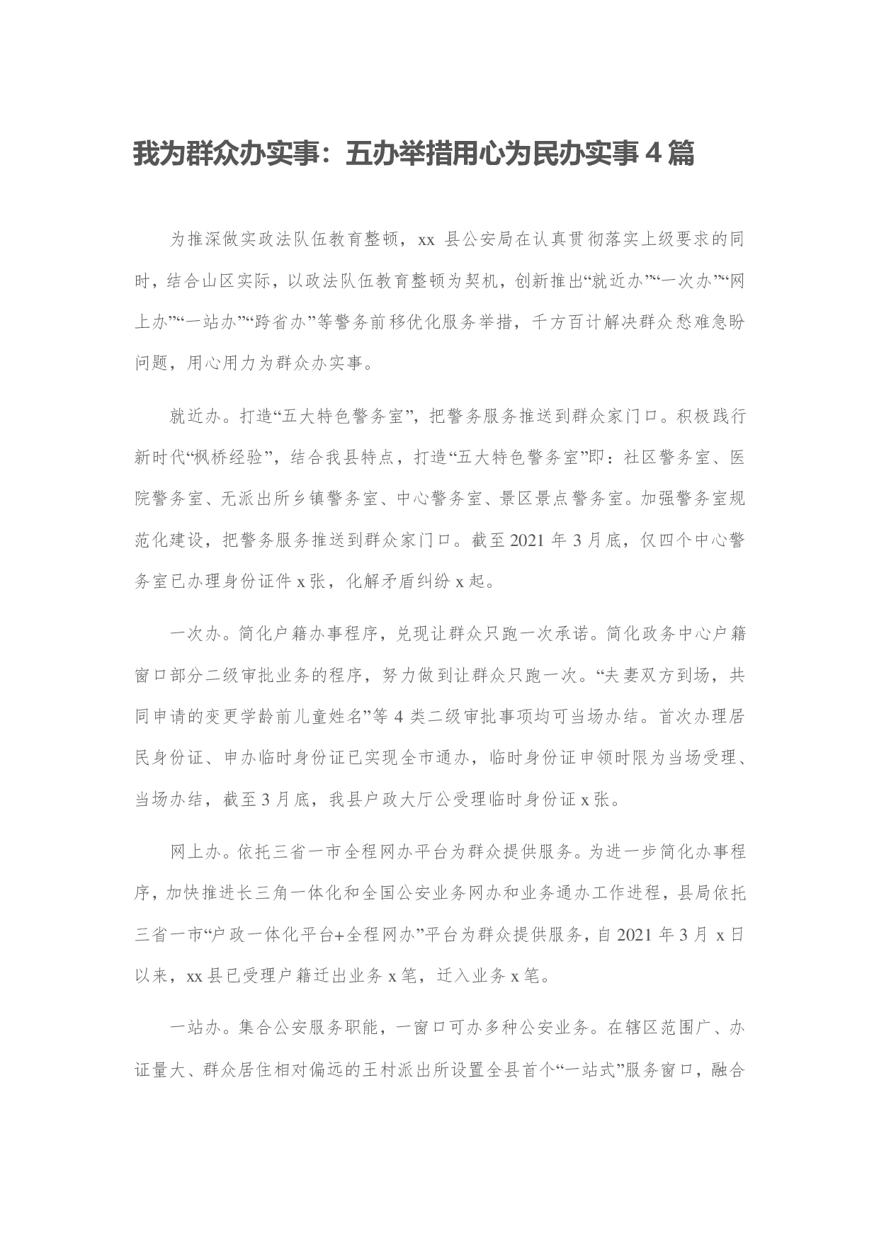 标题:我为群众办实事:五办举措用心为民办实事4篇