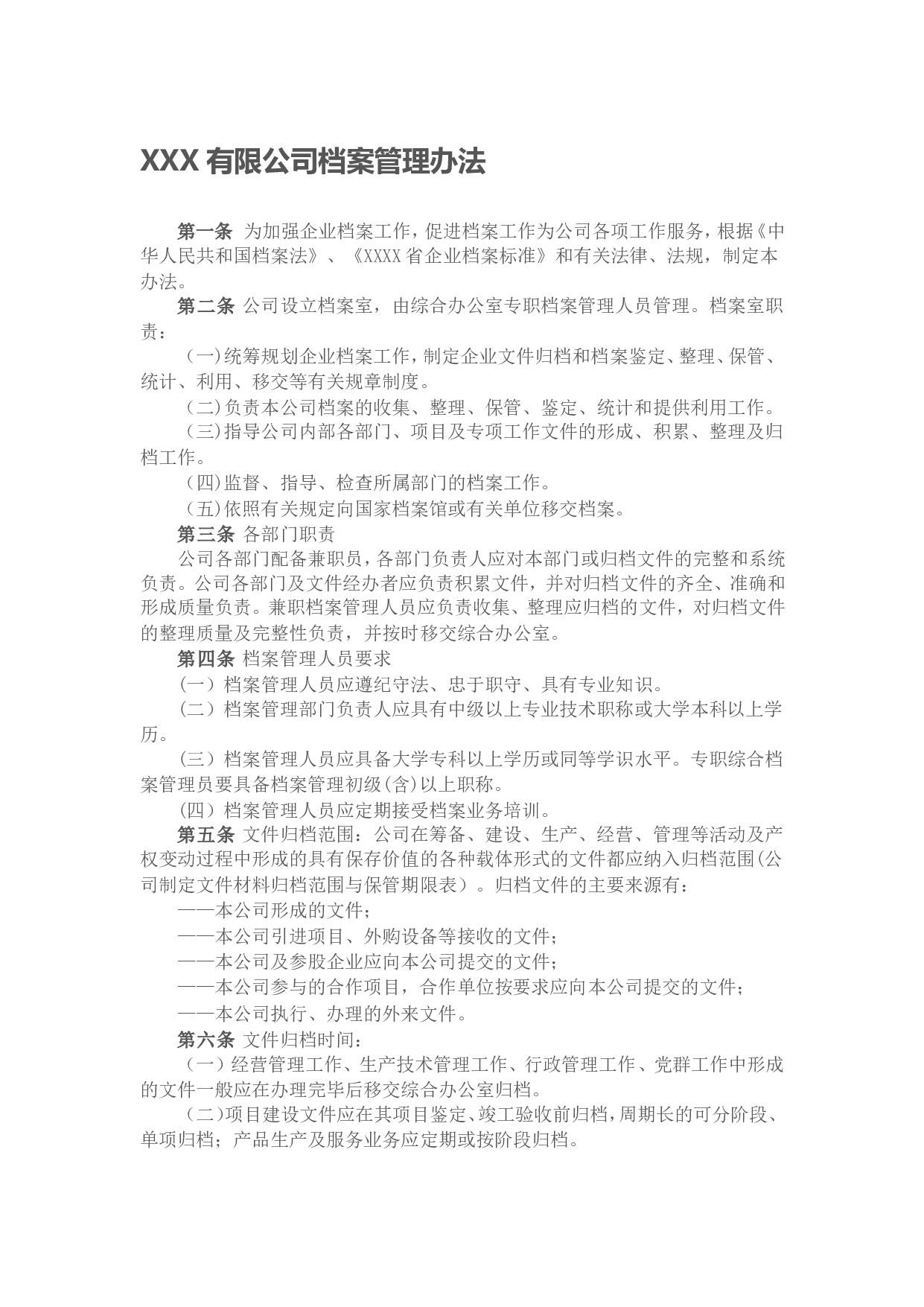 标题:XXX有限公司档案管理办法