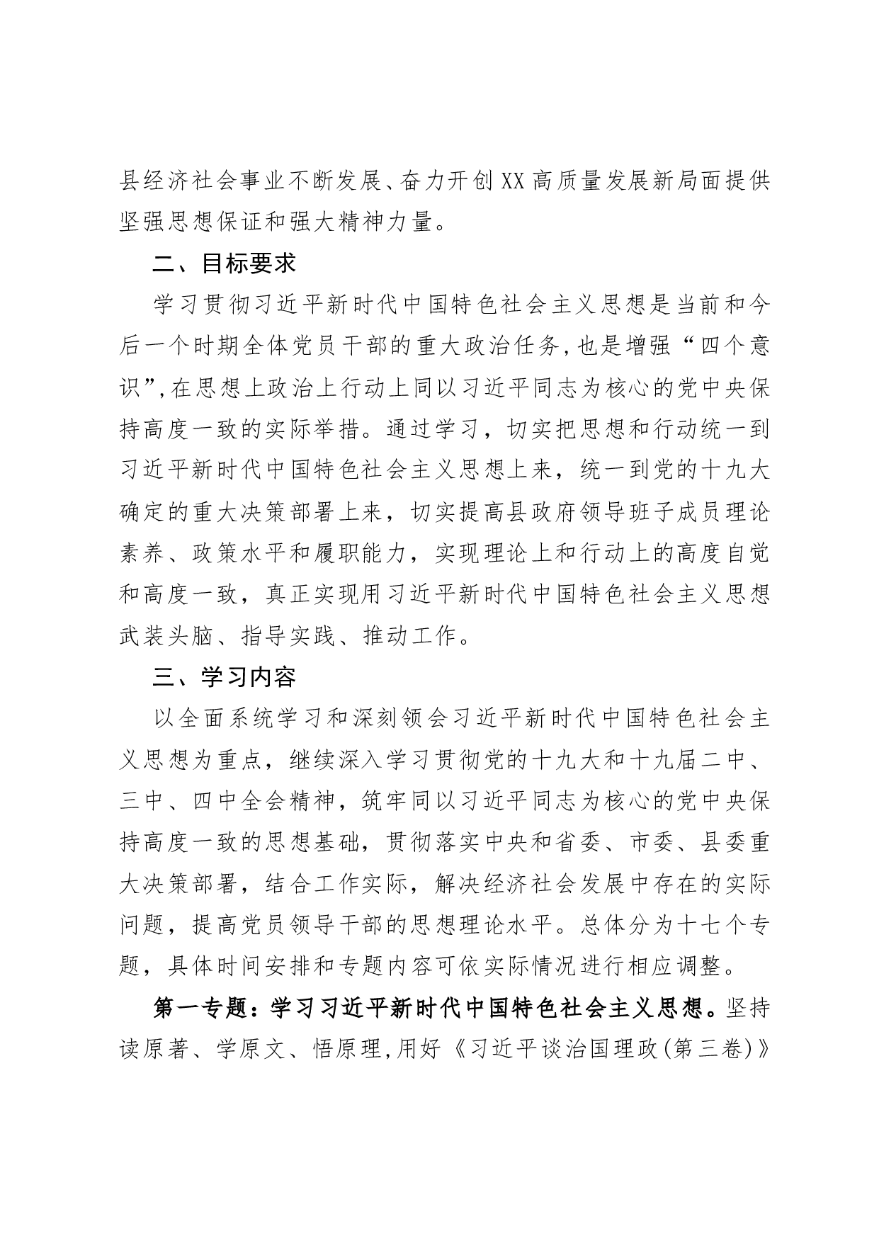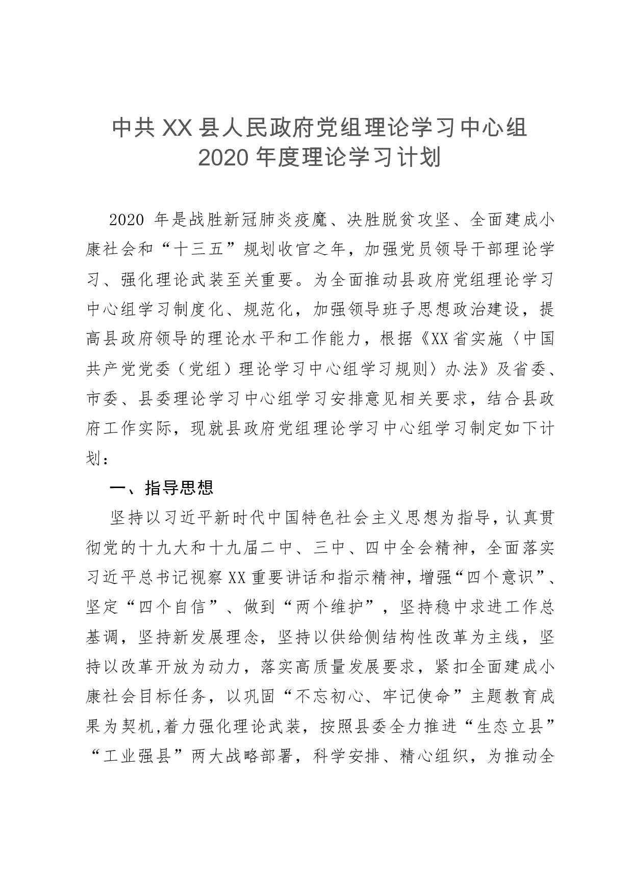 标题:中共XX县人民政府党组理论学习中心组2020年度理论学习计划