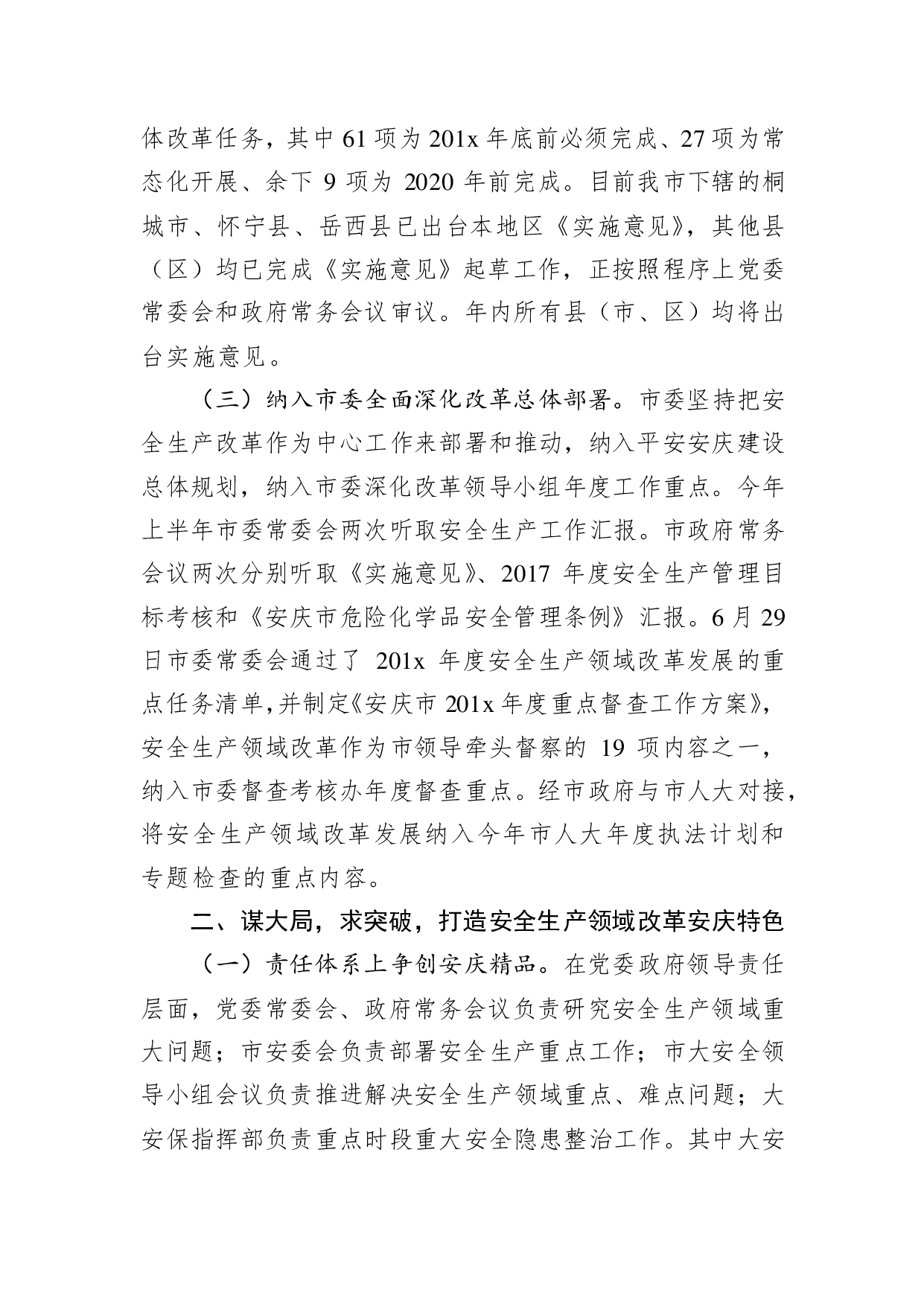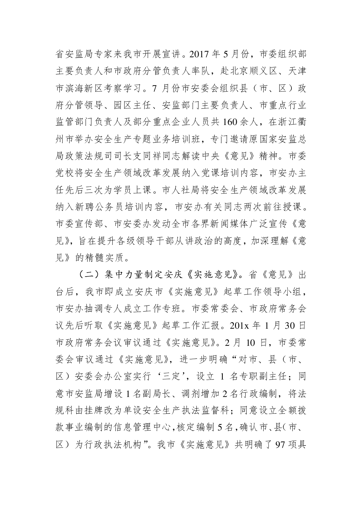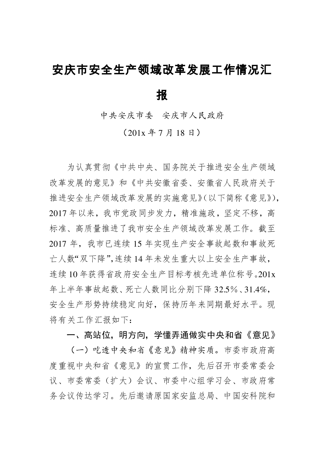 标题:安庆市安全生产领域改革发展工作情况汇报