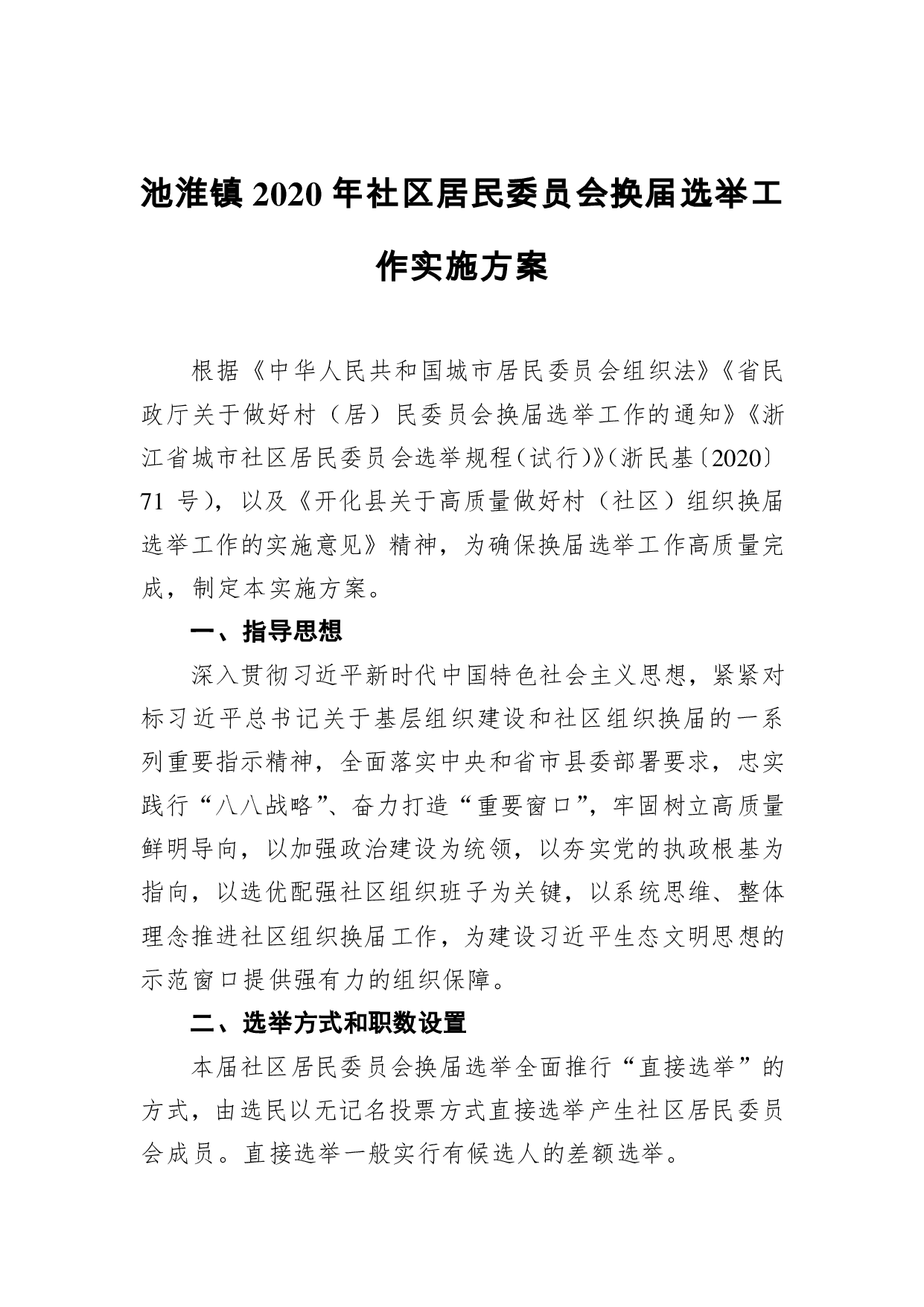 标题:池淮镇2020年社区居民委员会换届选举工作实施方案