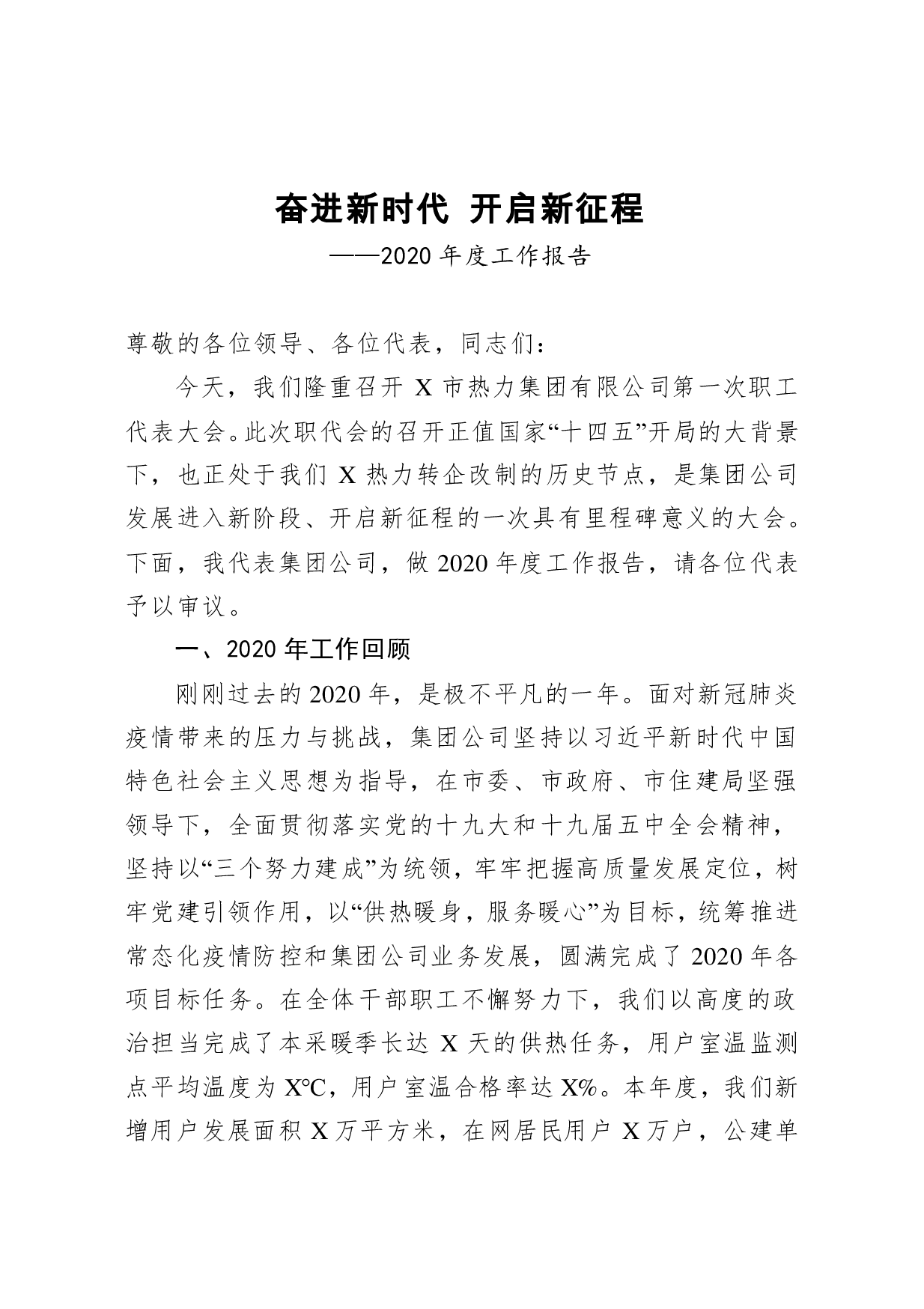 标题:奋进新时代 开启新征程2020年度工作报告