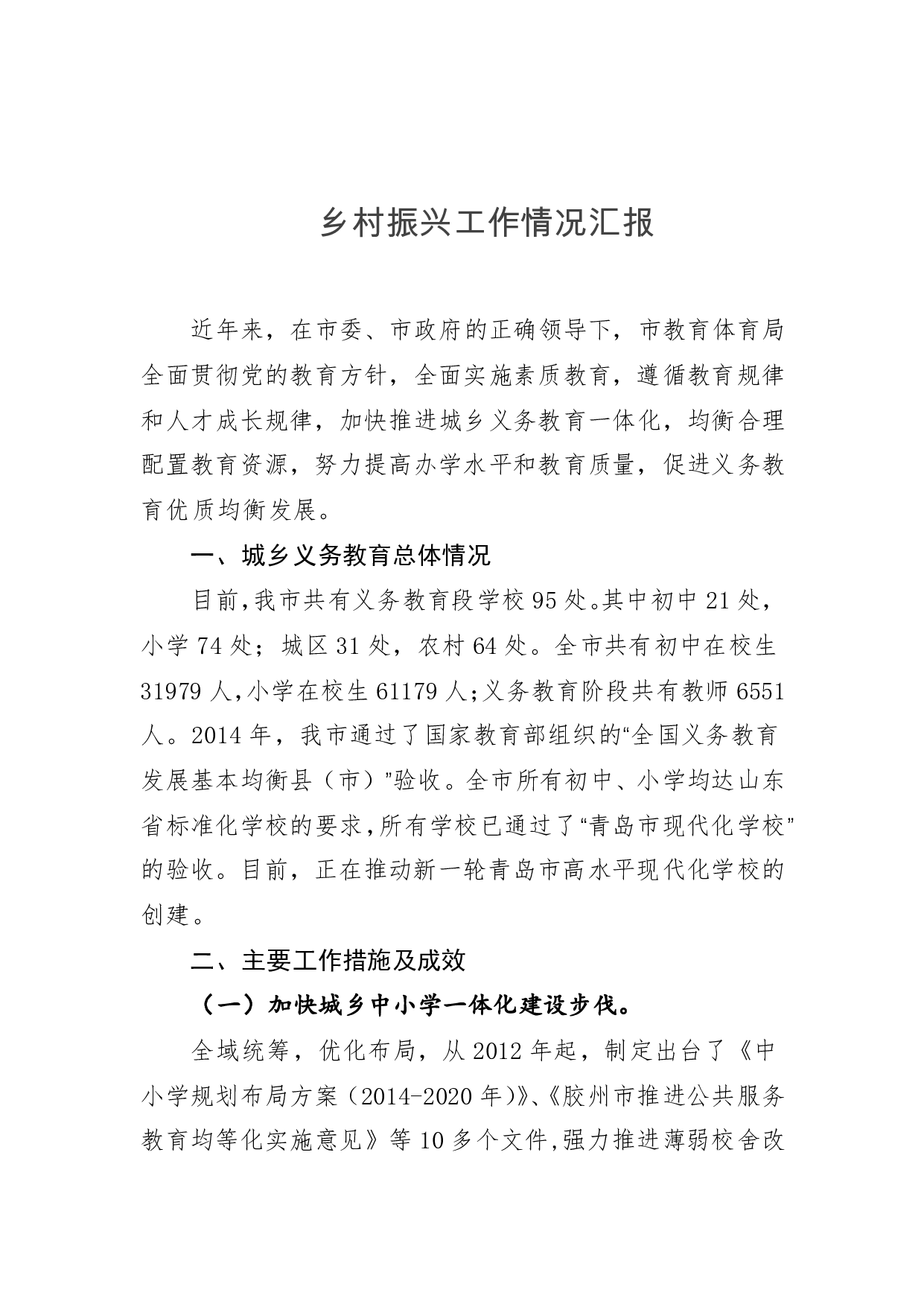 标题:市教育体育局乡村振兴工作情况汇报