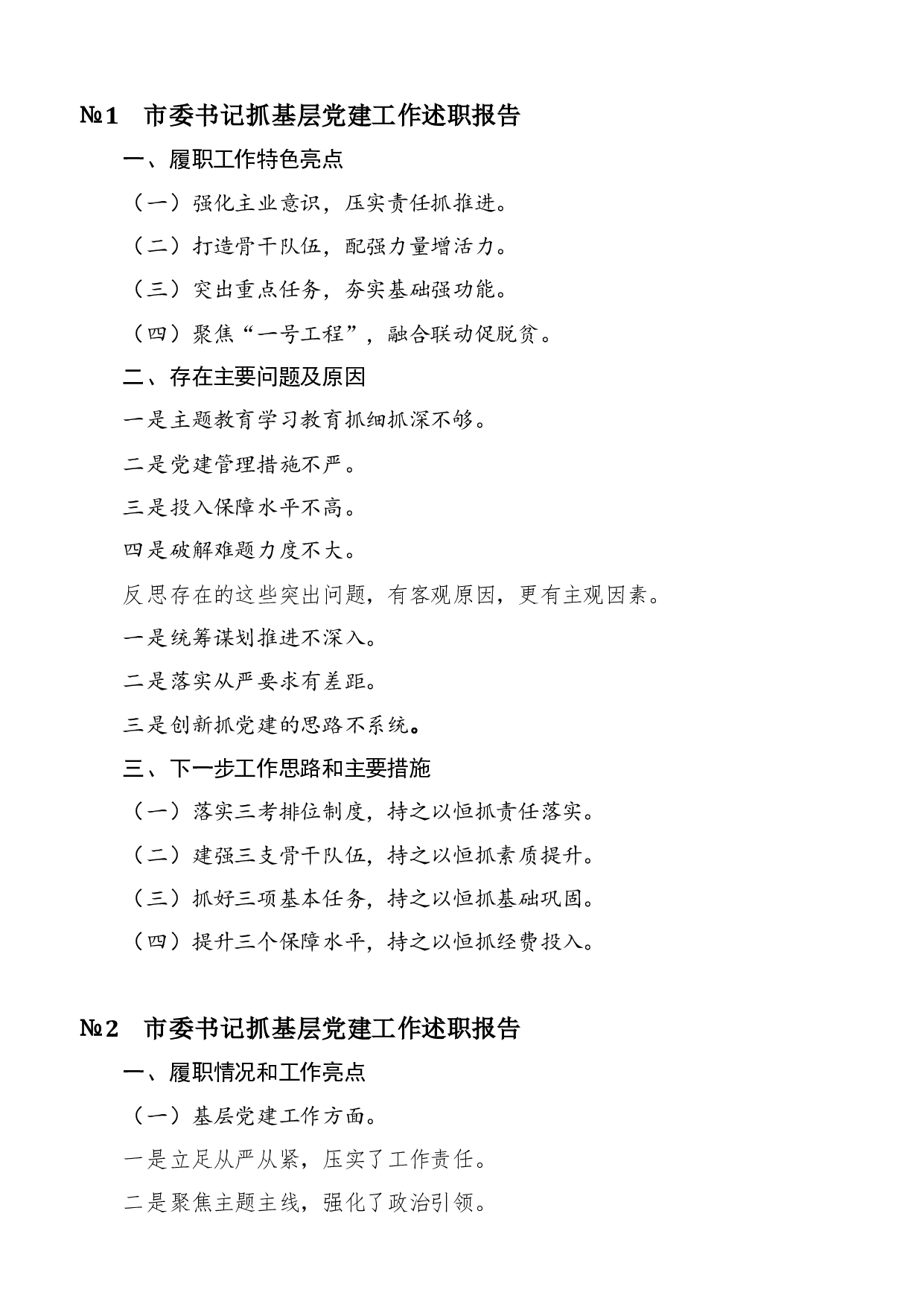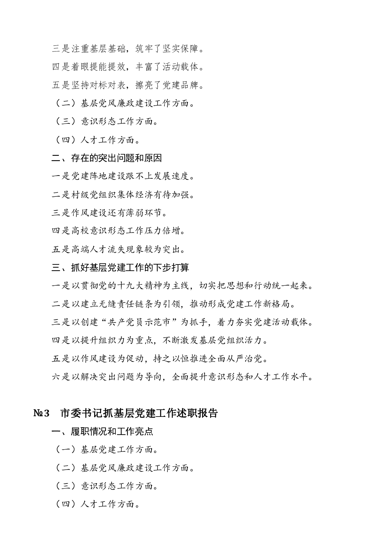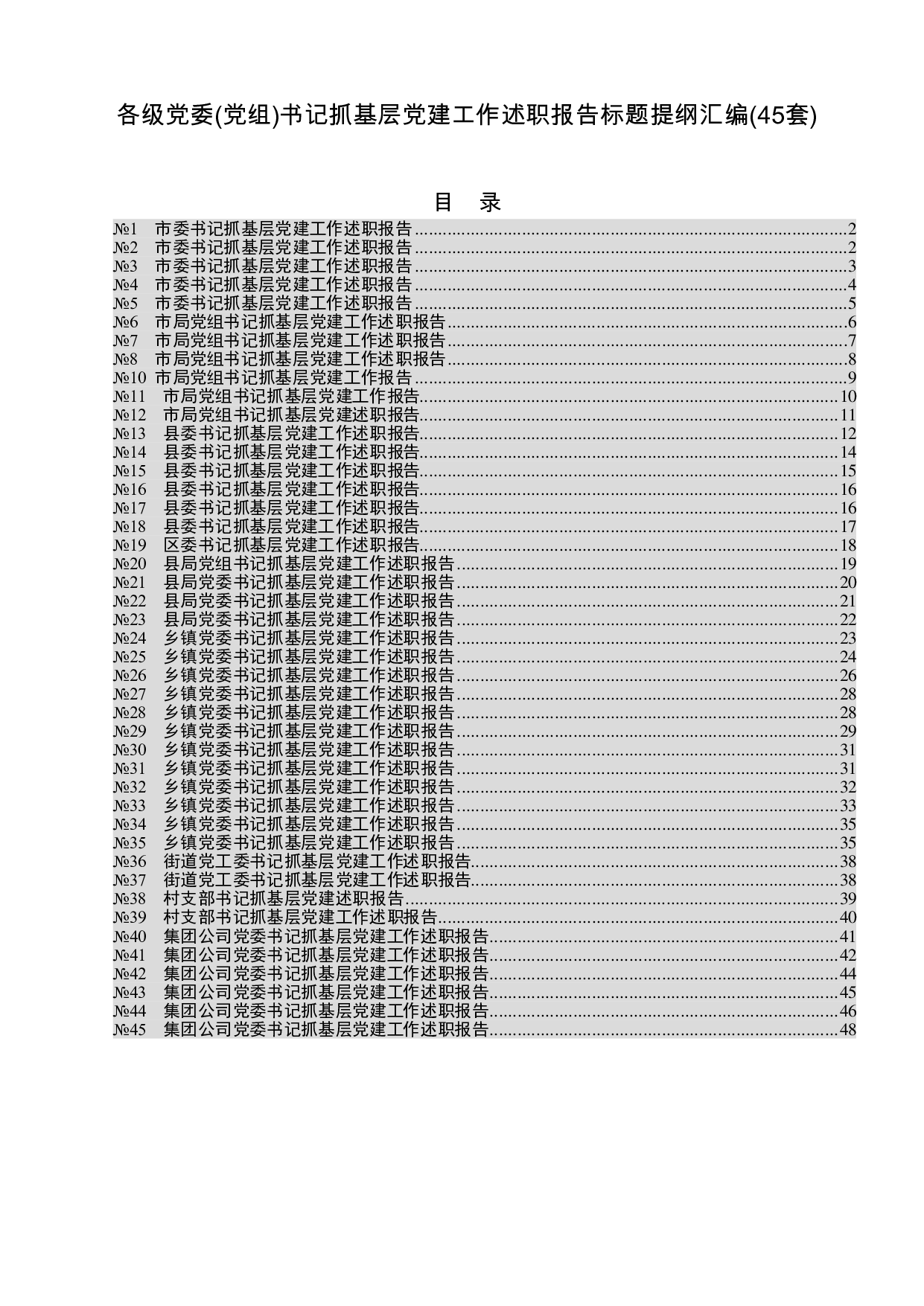 标题:书记抓党建述职工作精彩写作提纲45例