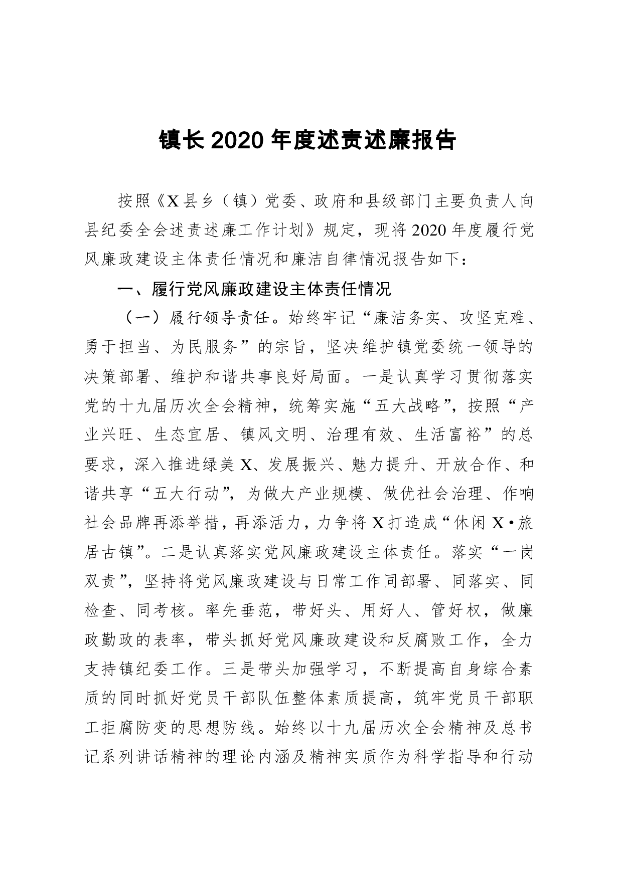 标题:镇长2020年度述责述廉报告
