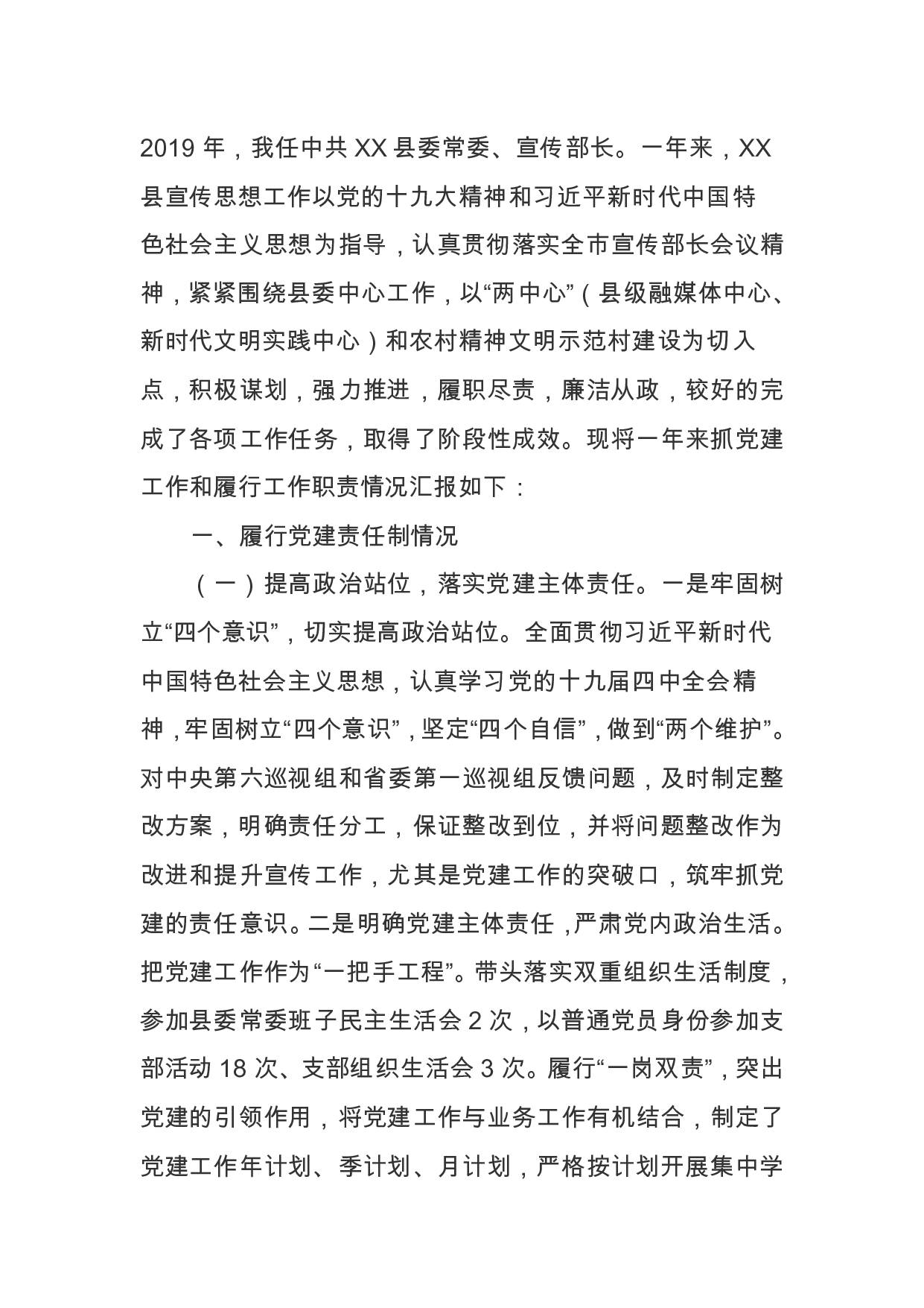 标题:县委宣传部部长2019年述职述廉报告