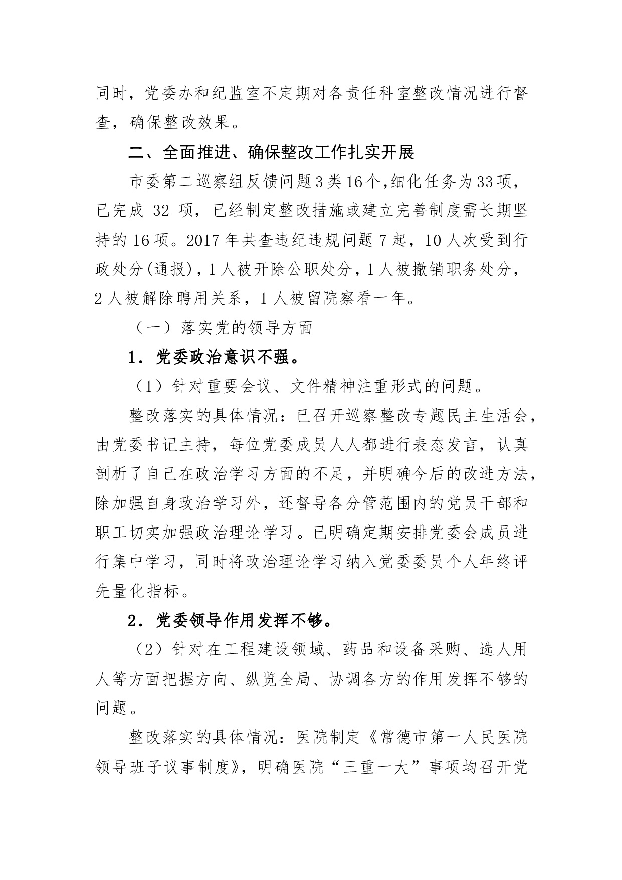 标题:中共xx市第一人民医院党委关于巡察整改情况的通报
