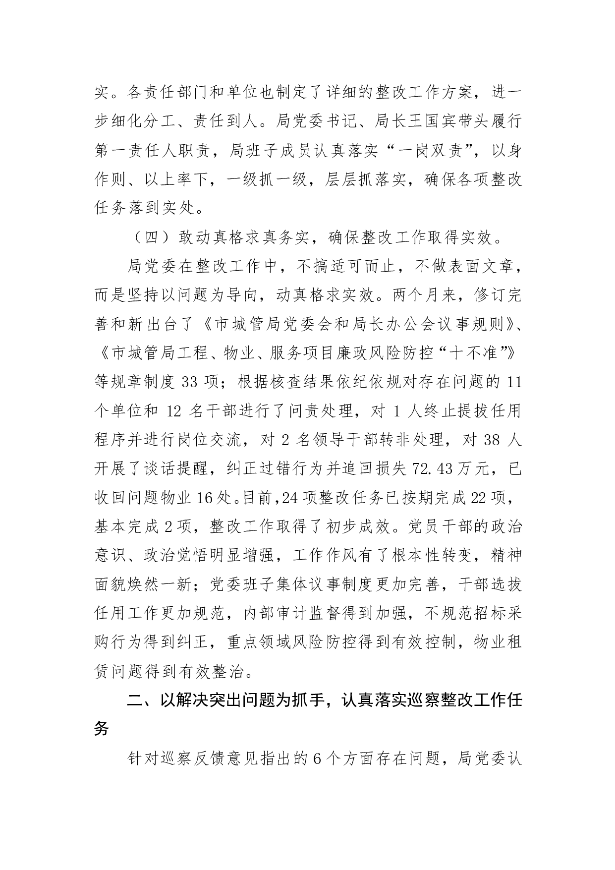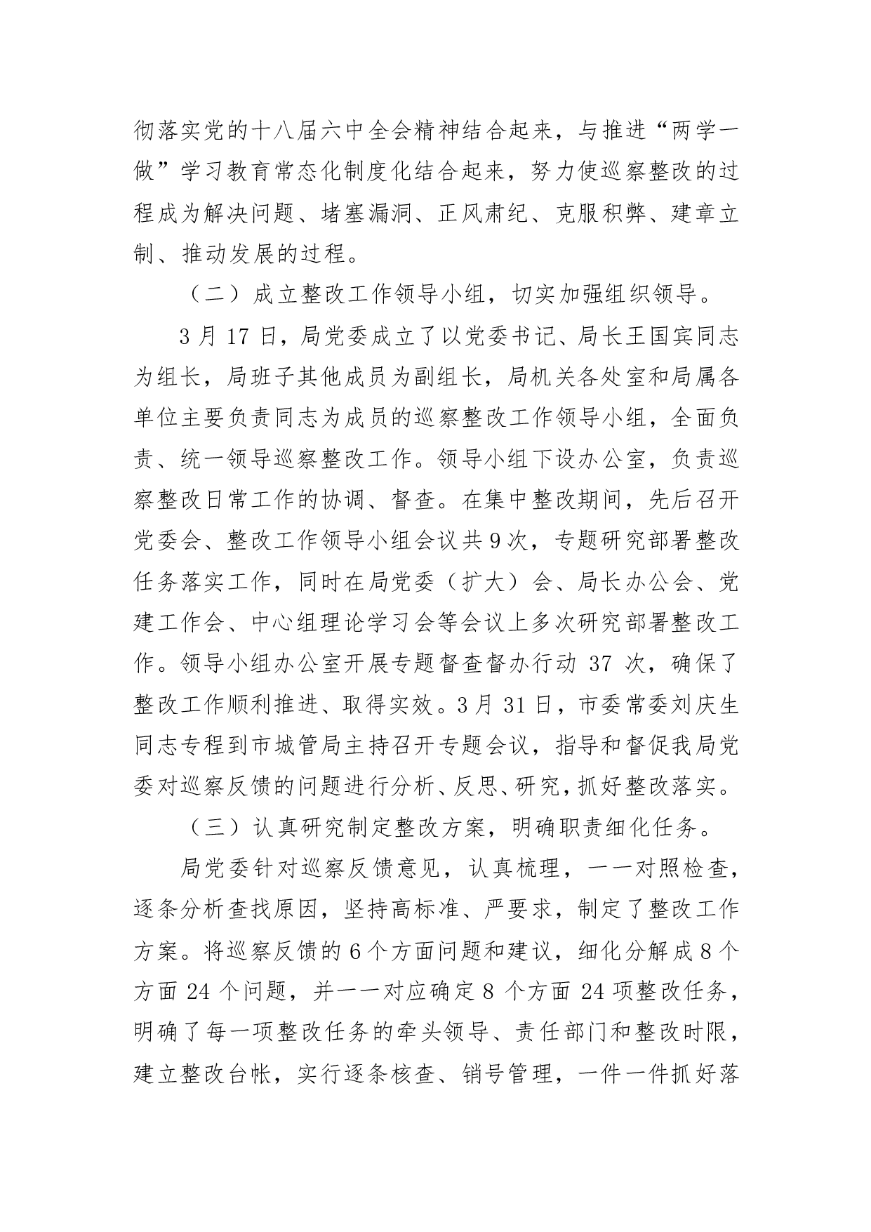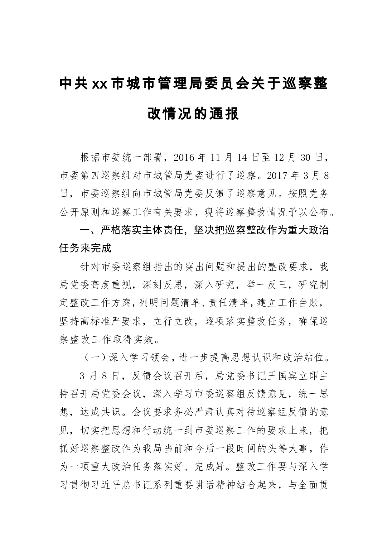 标题:中共xx市城市管理局委员会关于巡察整改情况的通报