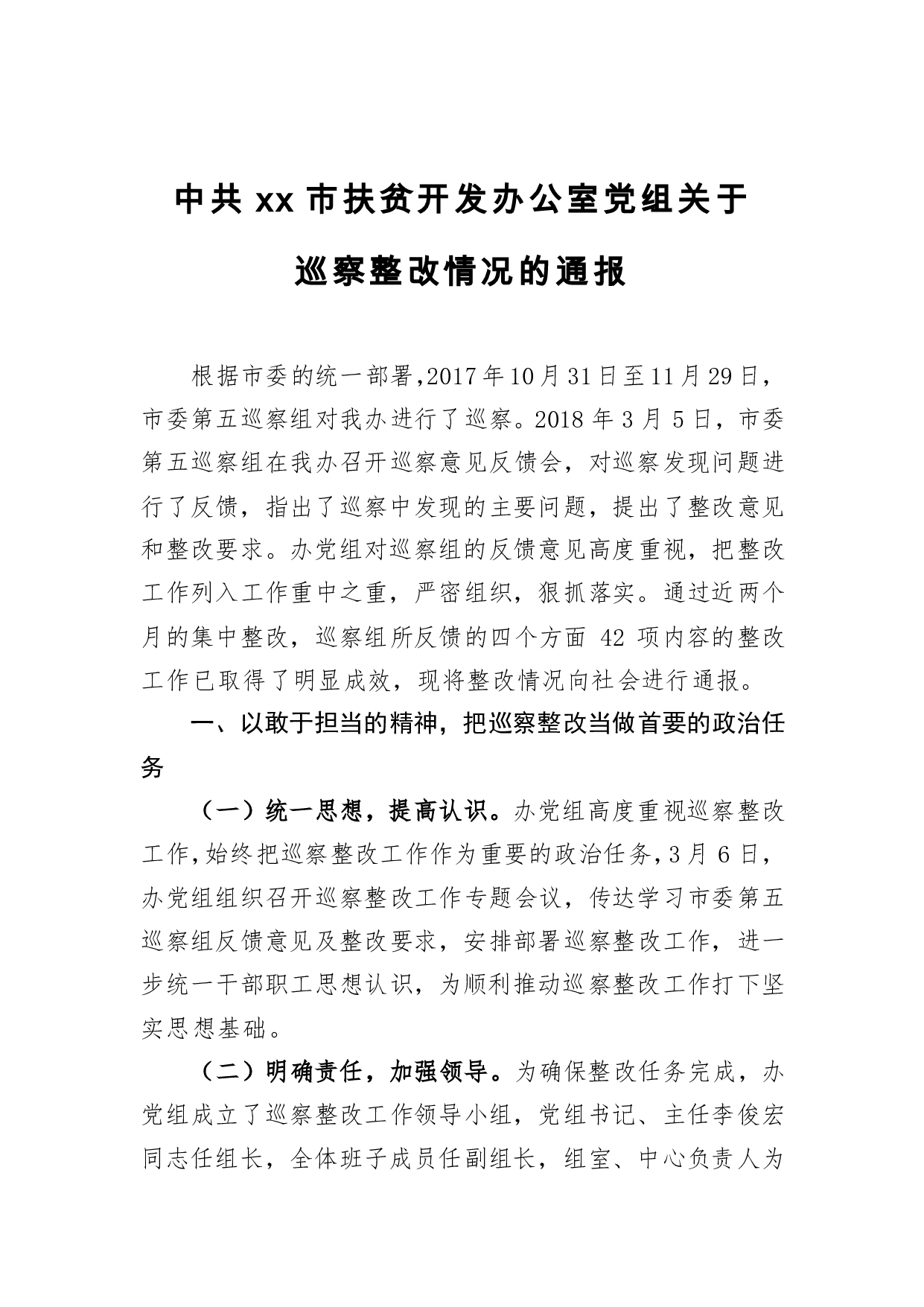 标题:中共xx市扶贫开发办公室党组关于巡察整改情况的通报