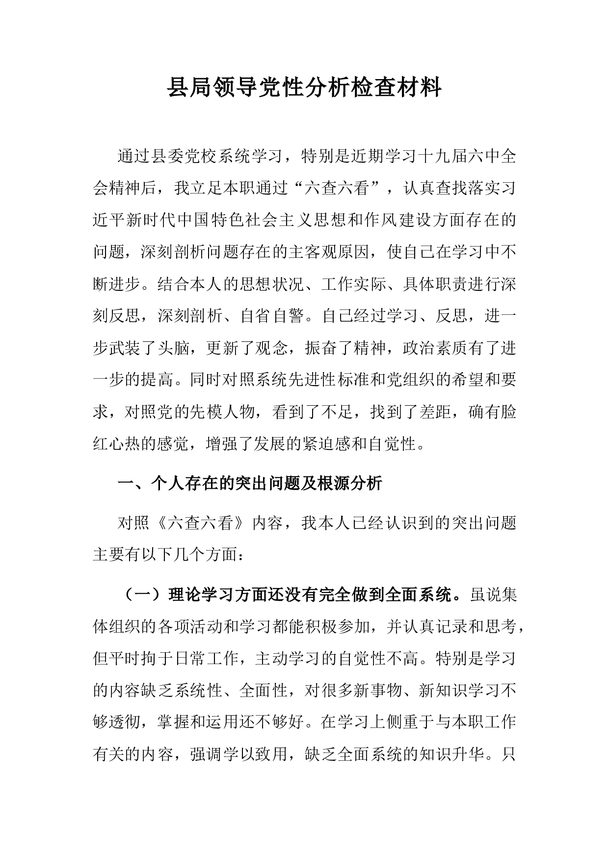 标题:县局领导党性分析检查材料