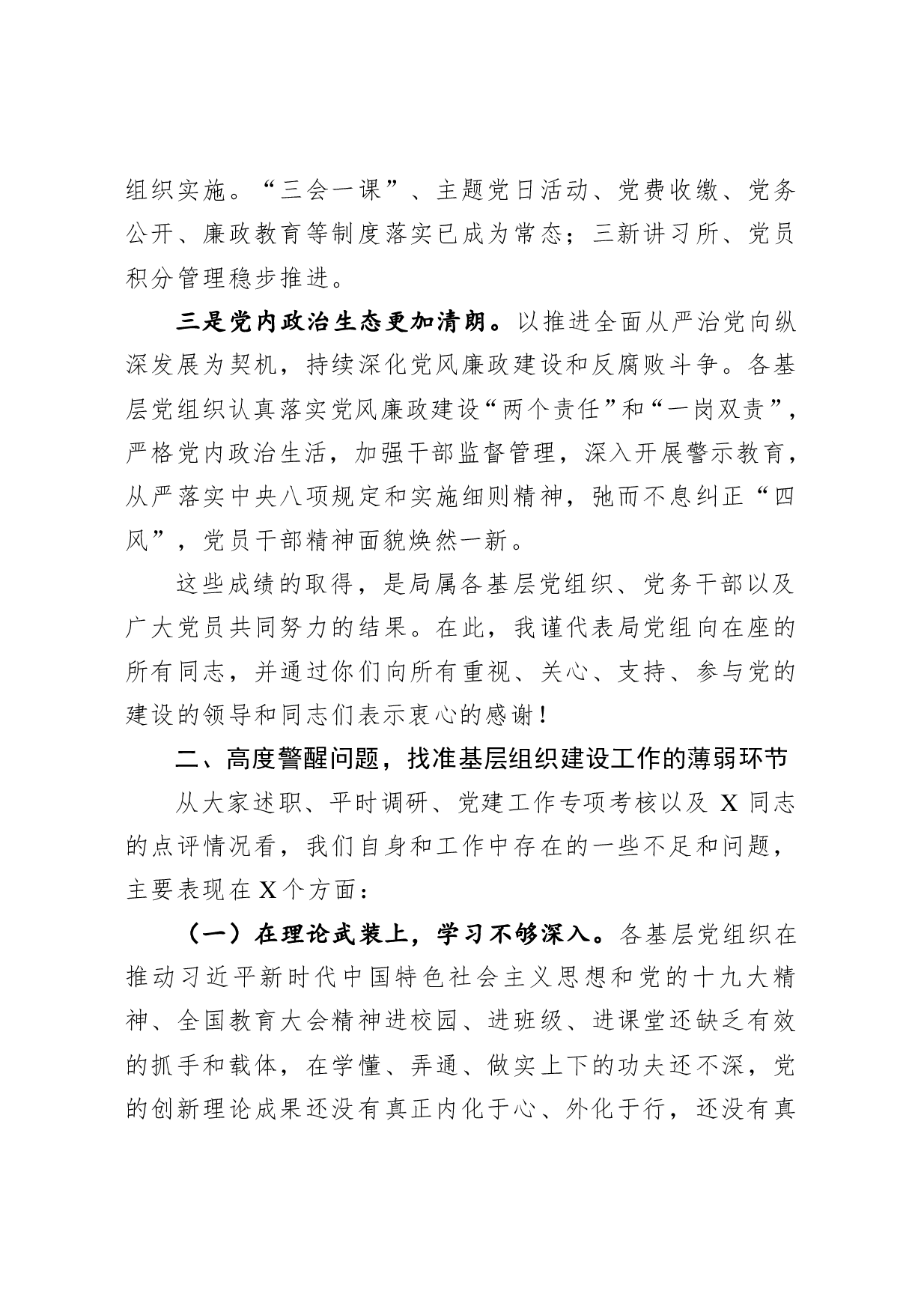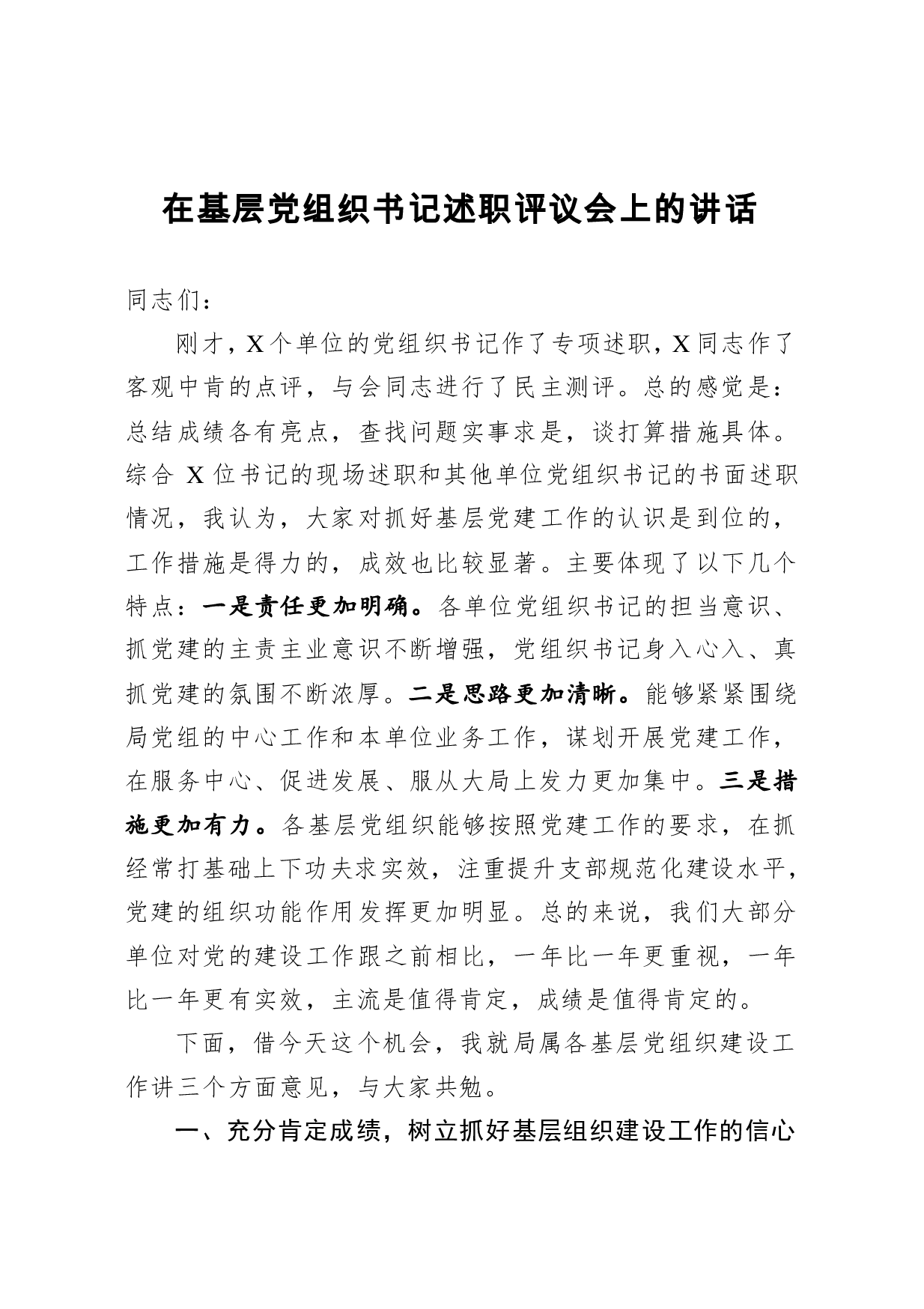 标题:在基层党组织书记述职评议会上的讲话