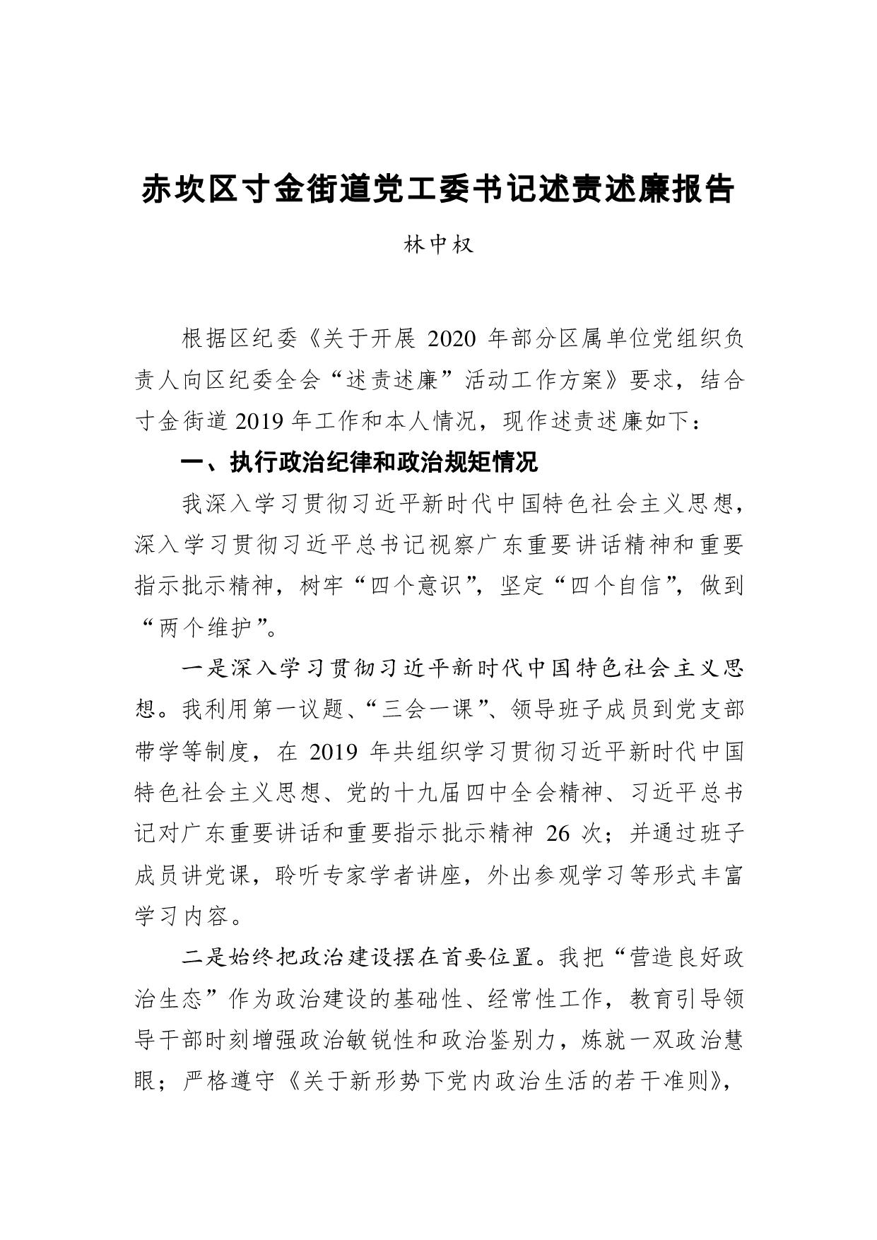 标题:林中权:赤坎区寸金街道党工委书记述责述廉报告