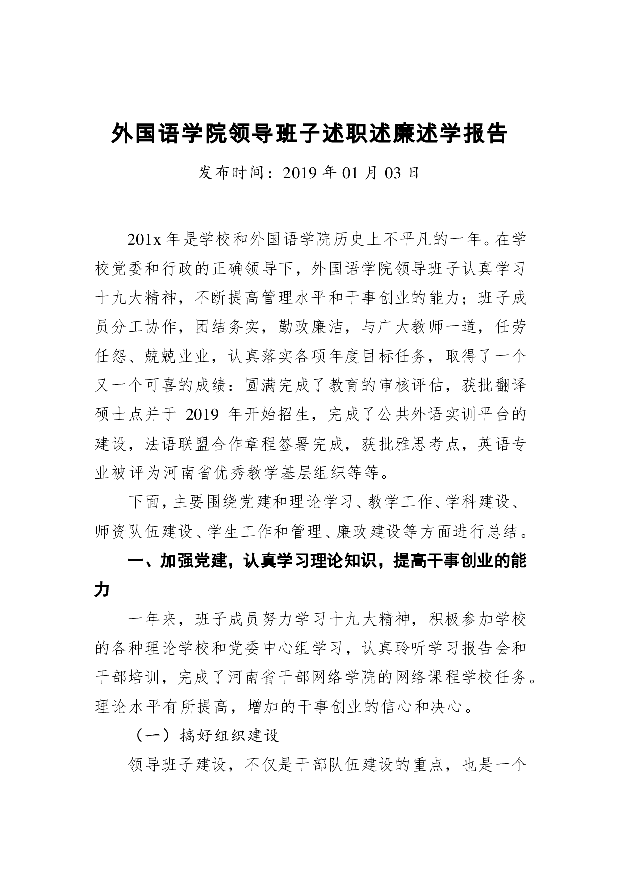 标题:外国语学院领导班子述职述廉述学报告
