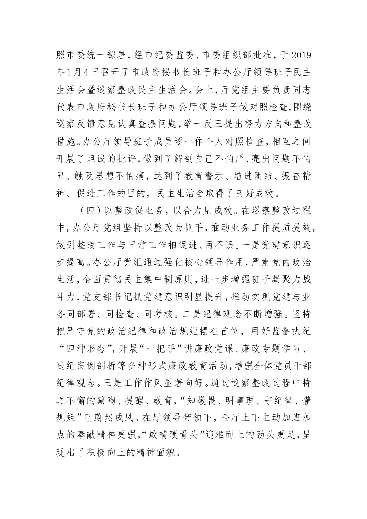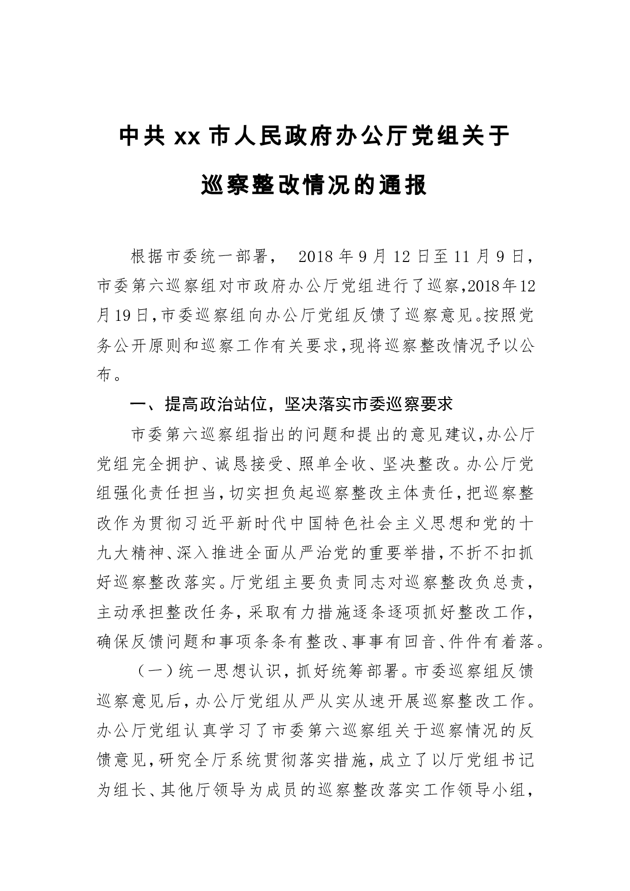 标题:中共xx市人民政府办公厅党组关于巡察整改情况的通报