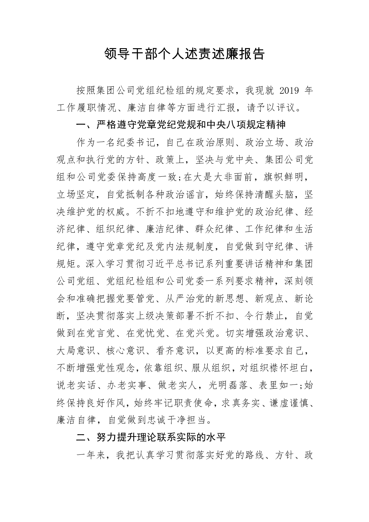 标题:领导干部个人述责述廉报告