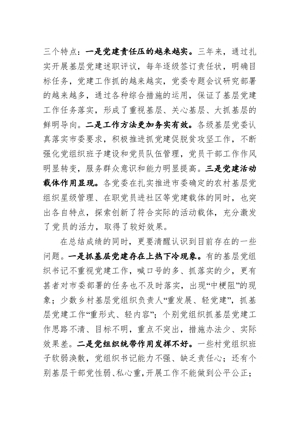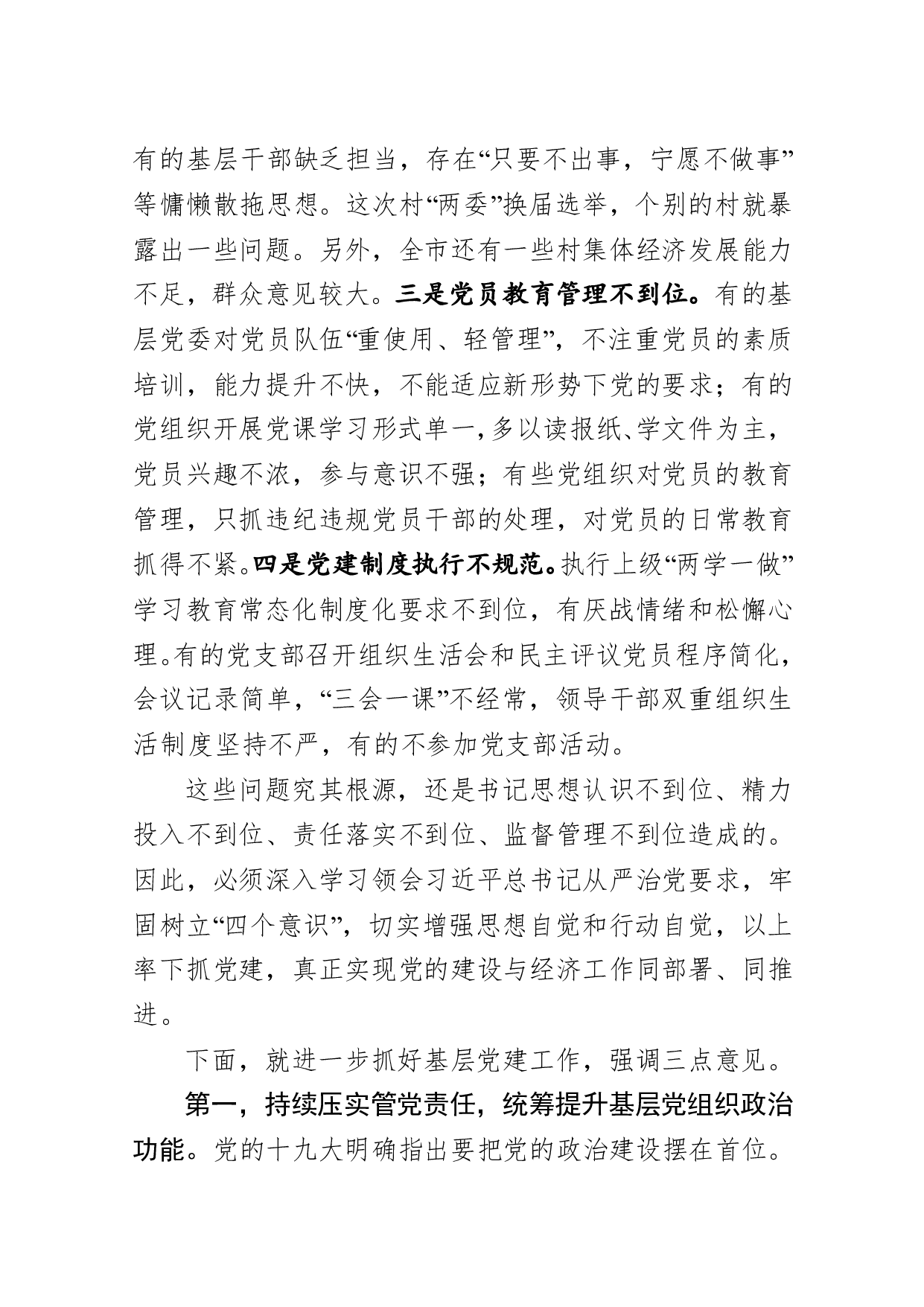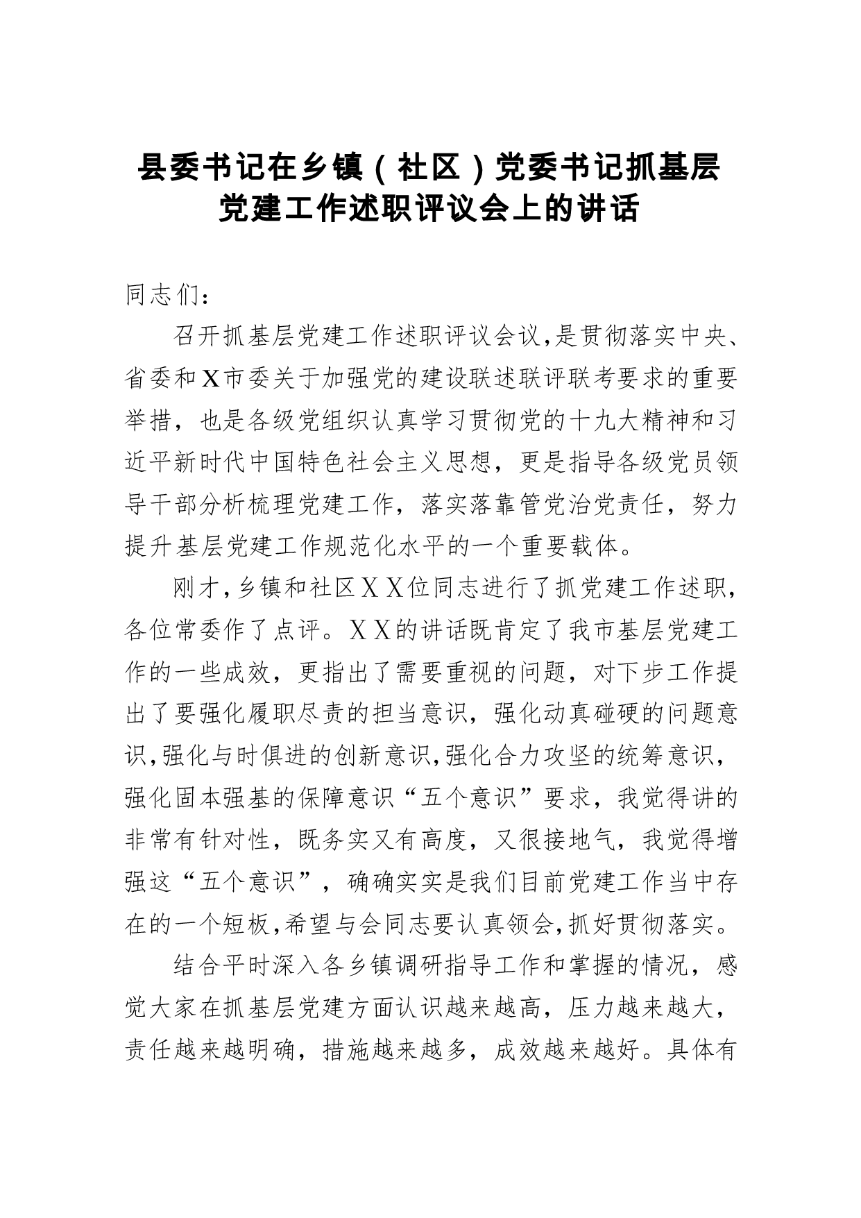 标题:县委书记在乡镇社区党委书记抓基层党建工作述职评议会上的讲话