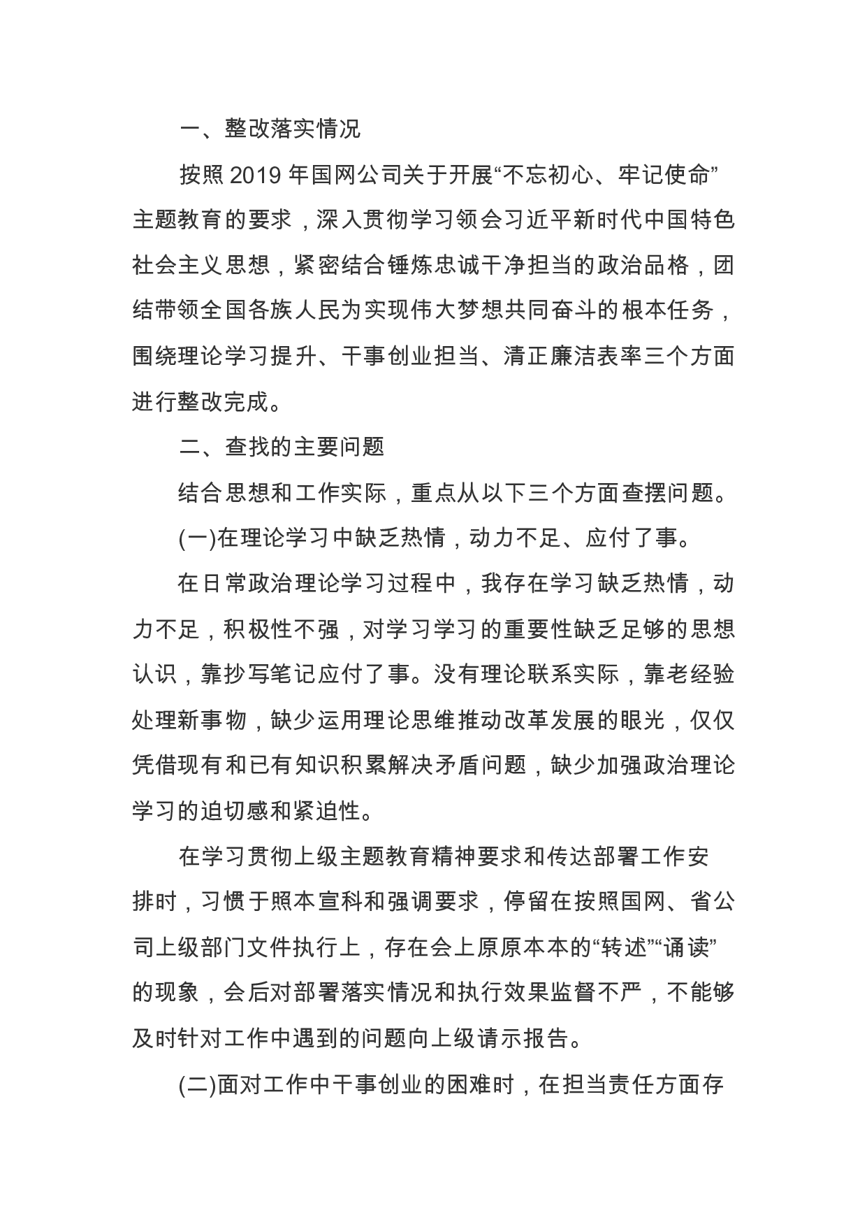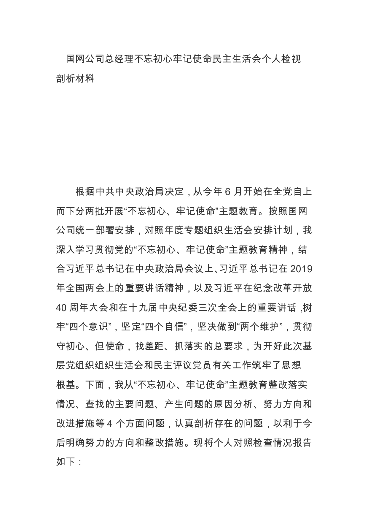 标题:国网公司总经理不忘初心牢记使命民主生活会个人检视剖析材料